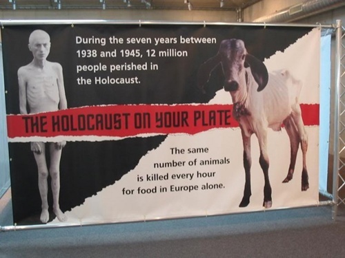Hiệp hội bảo vệ động vật PETA cũng là “cha đẻ” của những quảng cáo làm người khác khó chịu. Đáng chú ý nhất là chiến dịch quảng cáo có tên Holocaust on Your Plate năm 2003. Theo những dòng chữ được ghi trên poster quảng cáo này, trong suốt 7 năm, từ 1938 -1945, 12 triệu người phải bỏ mạng trong cuộc hủy diệt hàng loạt, và chỉ tính riêng ở châu Âu, mỗi giờ trôi qua cũng có cùng số lượng con vật bị giết để cung cấp thực phẩm cho người dân. Chiến dịch này đã hứng chịu vô số chỉ trích bởi sự so sánh khập khiễng giữa con người và động vật, mà hầu hết mọi người cho là khác hẳn nhau về bản chất.