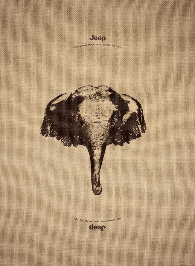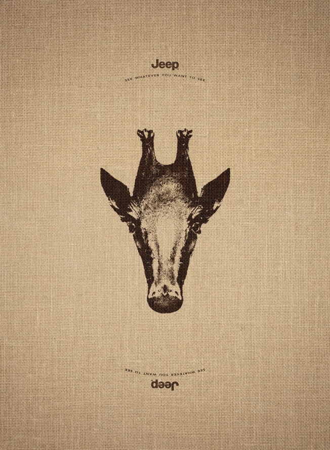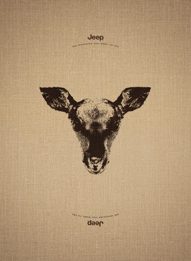 | Thông điệp của Jeep trong những quảng cáo này là "Ngắm nhìn bất cứ thứ gì bạn muốn". Theo đó, chỉ việc quay ngược bức ảnh, bạn sẽ thấy một con vật khác . |