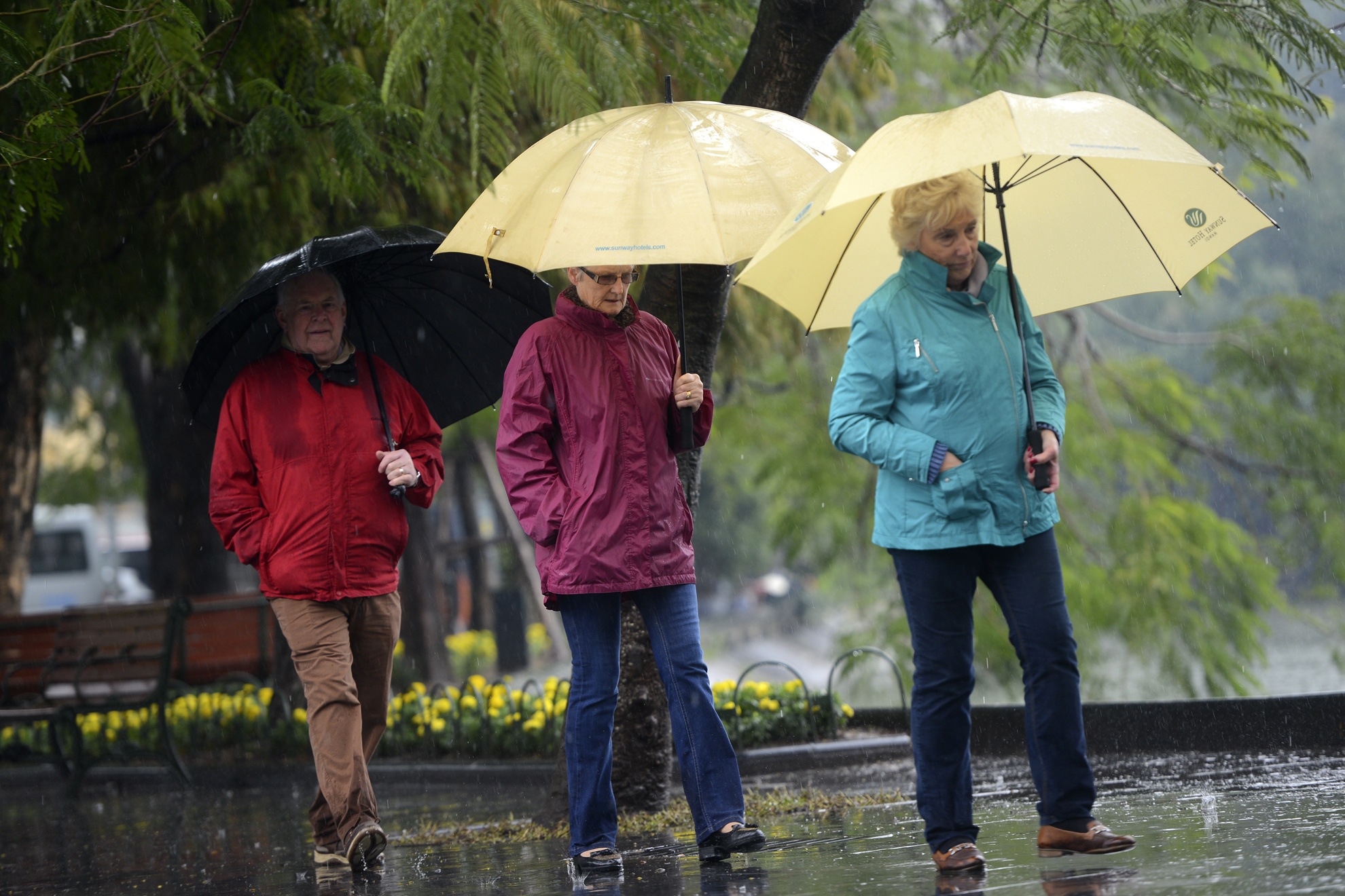 | Ngoài quần áo giữ ấm, áo mưa, ô dù, những chiếc nón cũng trở thành vật dụng khá hữu ích với khách du lịch dạo phố dưới mưa rét. |