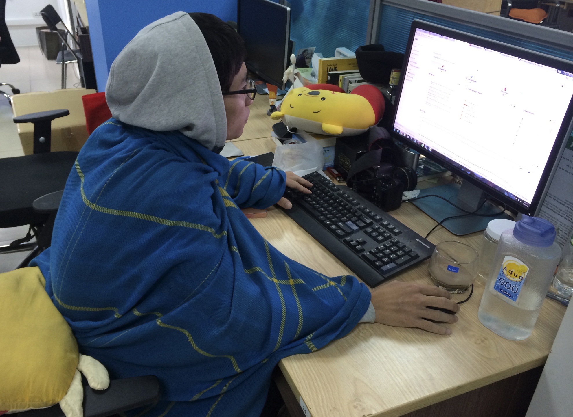 | Mặc dù nhiệt độ trong phòng ấm hơn nhiều so với ngoài trời nhưng anh Huy vẫn phải quấn chăn, ôm túi sưởi làm việc tại một văn phòng. |