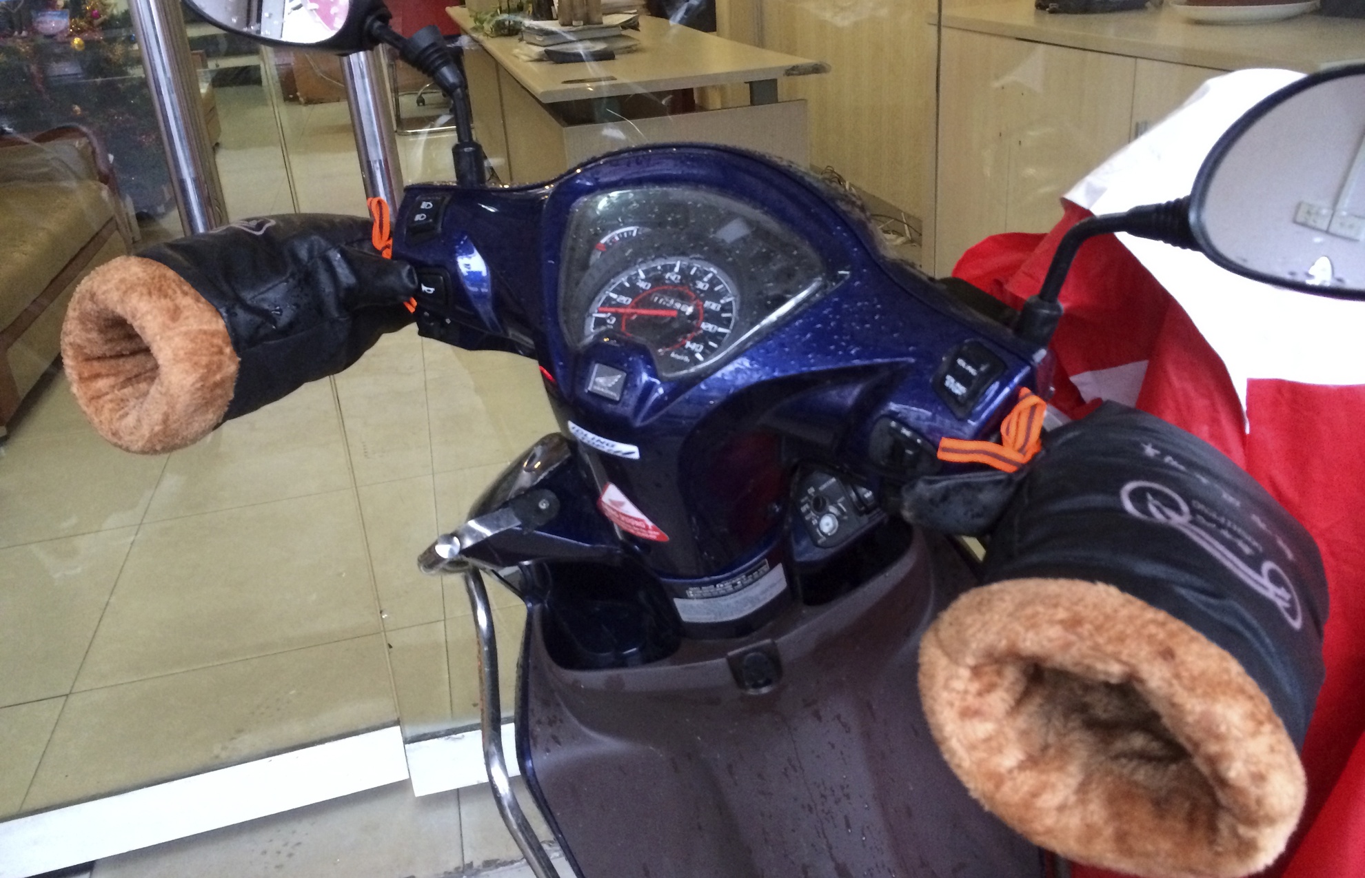 | Loại găng tay lớn gắn liền vào tay lái xe máy, chủ yếu để chống mưa rét vốn thường chỉ thấy trên các tỉnh miền núi phía bắc. |