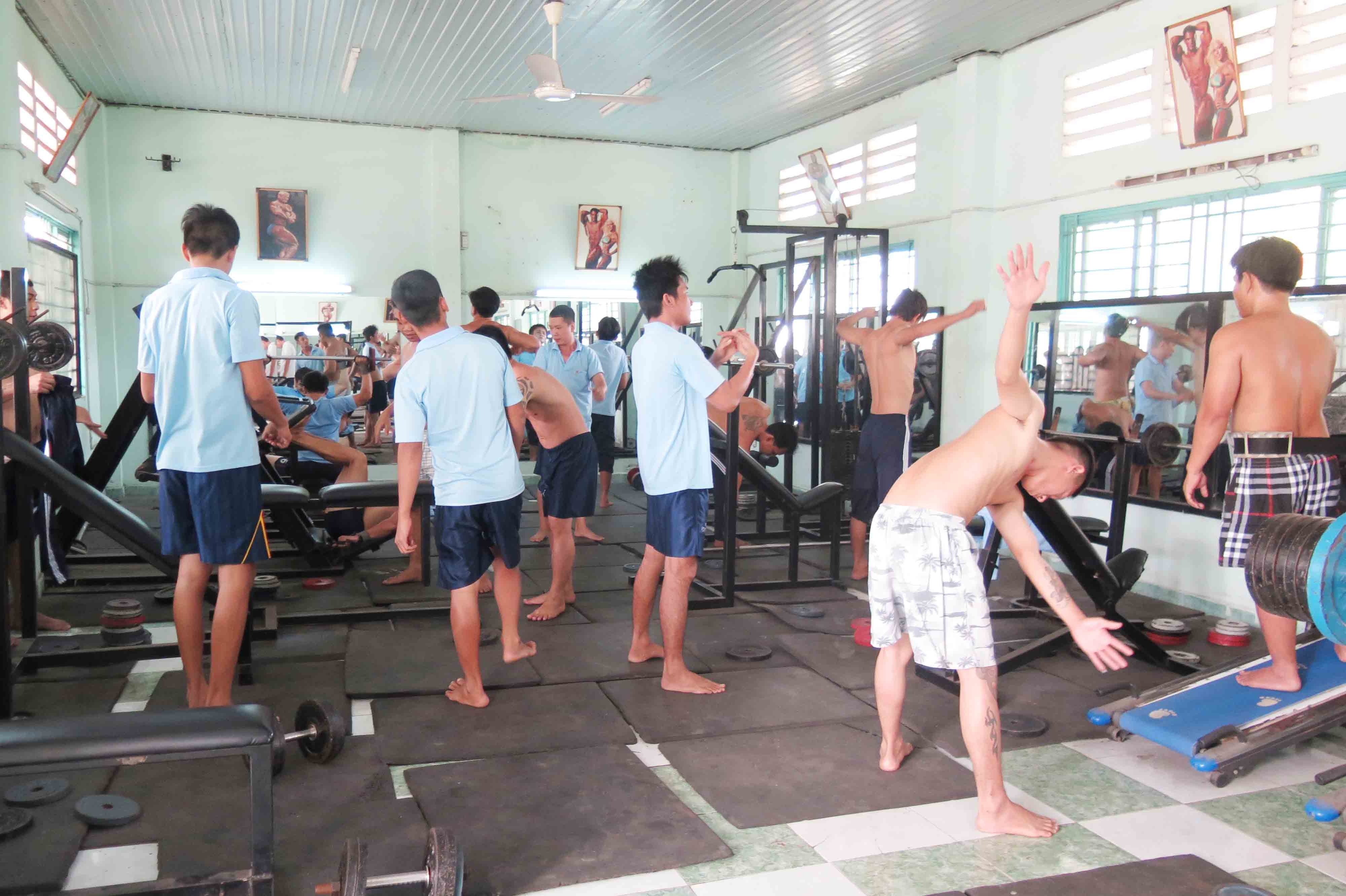 | Hàng ngày các học viên cai nghiện tập thể hình để rèn luyện sức khỏe. |