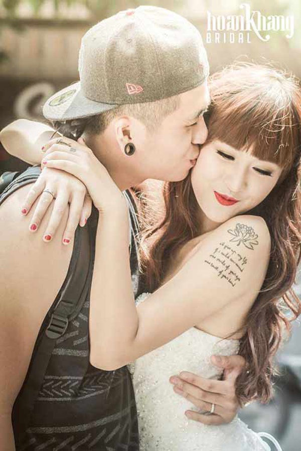 | Hà Lade lộ hình xăm trên cánh tay khi tạo dáng, nhiều người cho rằng những lời lẽ ngọt ngào ấy là dành tặng cho Ứng Duy Kiên - nửa kia của Hà. Tình yêu của hot girl này và bạn trai vẫn êm đẹp, họ chưa từng có scandal nào. |