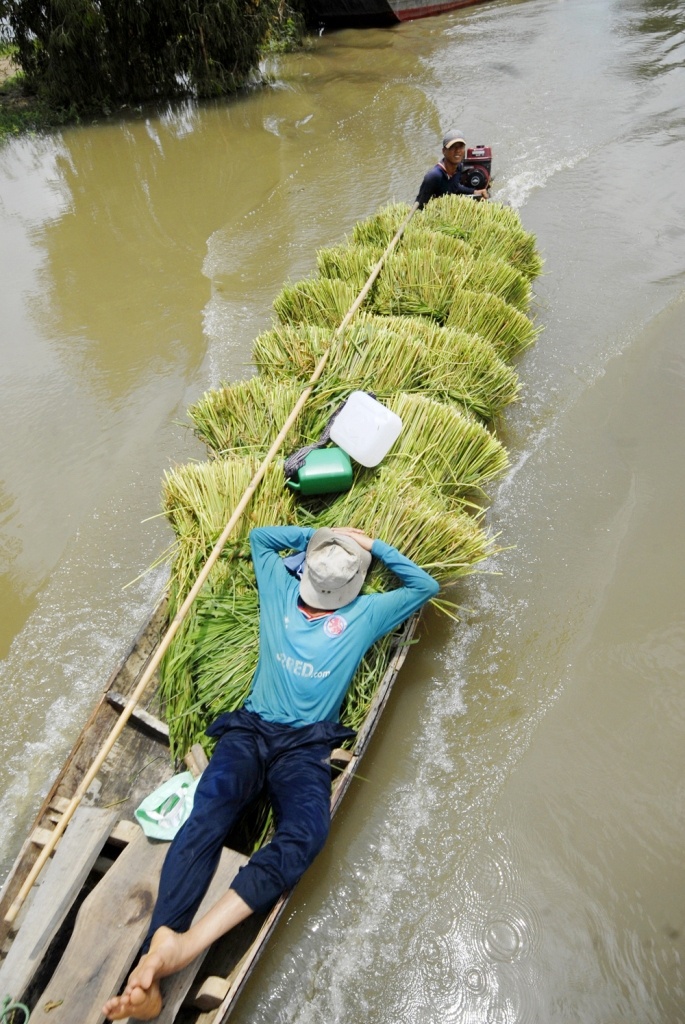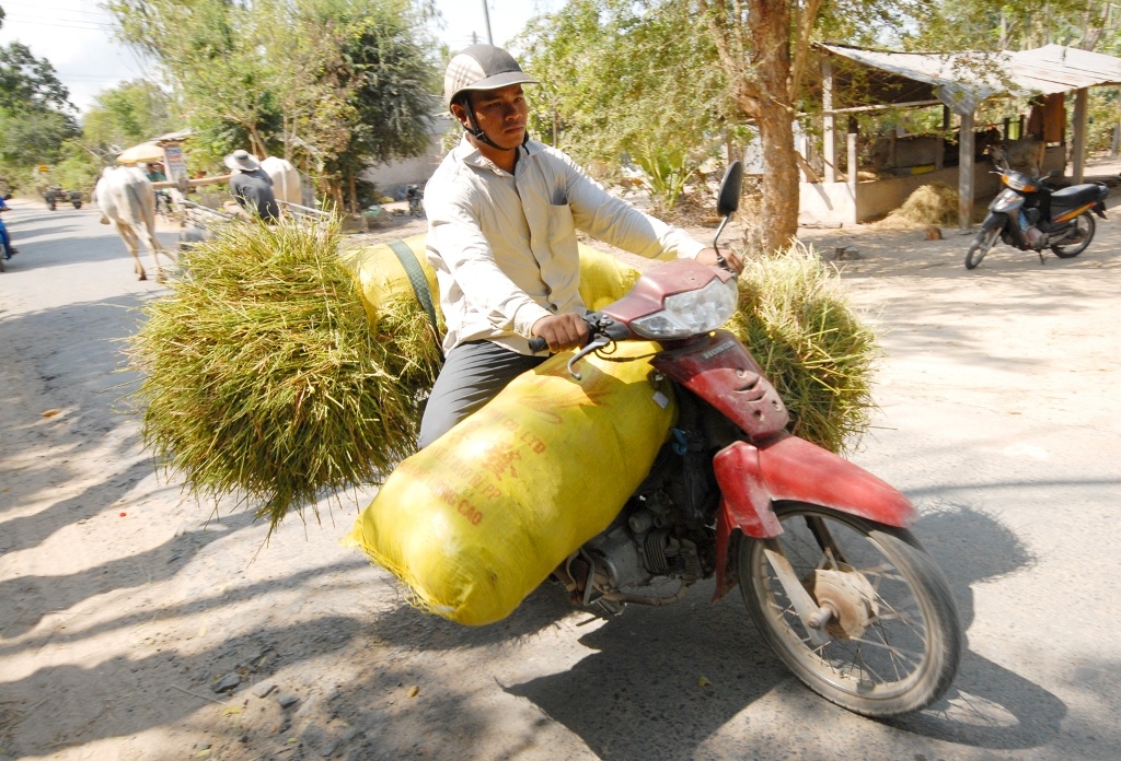 Anh Chau Nap (ấp Phước Lộc, xã Ô Lâm) chia sẻ, với chiếc tắc ráng nhỏ (tên 1 loại xuồng máy), vợ chồng anh thức dậy từ 3 - 4h sáng, tới những nơi có cỏ nhiều để cắt. Trung bình mỗi ngày cắt khoảng 80 bó cỏ, bán giá 2.500 đồng/bó, trừ tiền xăng, anh kiếm được trên dưới 150.000 đồng.