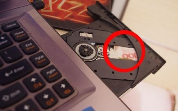 | Theo trang Funsterz, giấu tiền dưới bộ phận đặt đĩa CD/DVD của laptop là một trong những ý tưởng lạ nhất từ trước đến nay. Ảnh: funsterz.com |