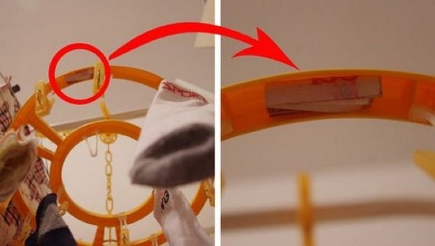 | Một cư dân mạng tiết lộ hình thức giấu tiền vô cùng tinh vi dưới móc treo quần áo. Ảnh:funsterz.com |