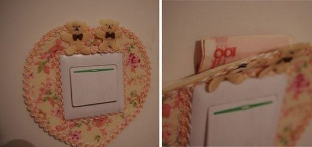 | Những mảnh vải trang trí và bảo vệ ổ điện là phương tiện hữu ích để cất tiền. Ảnh:funsterz.com |