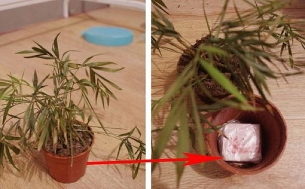 | Xấp tiền dưới đáy của chậu cây cảnh. Ảnh: funsterz.com |