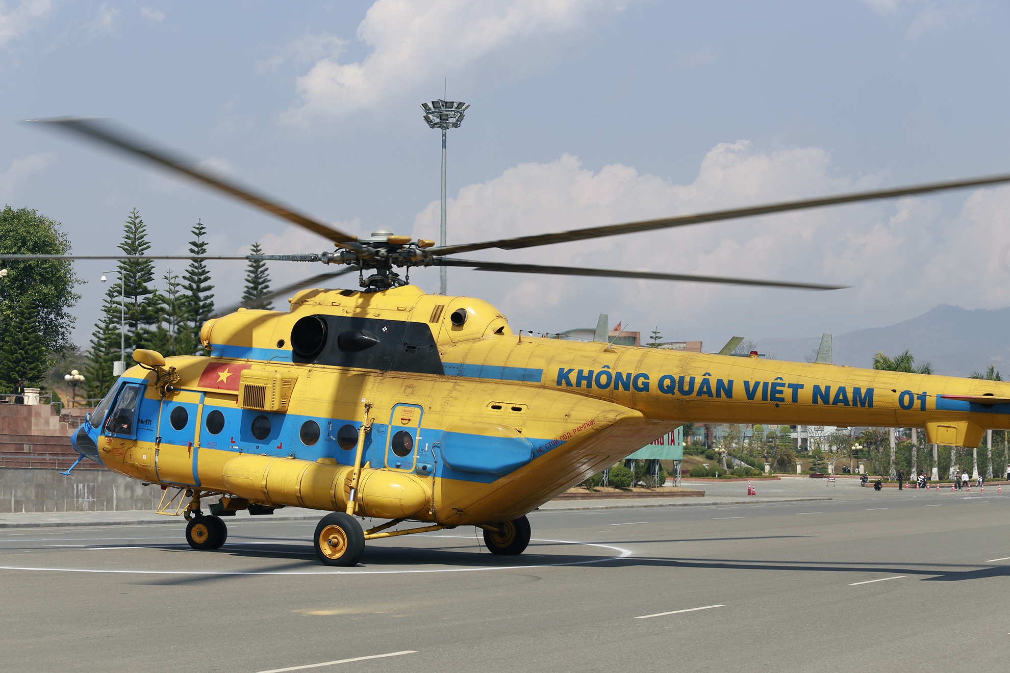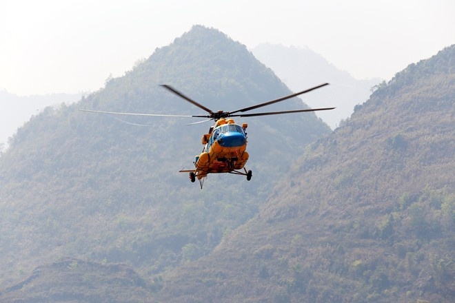 | Mi-171 đang hoạt động trong biên chế Không quân Việt Nam với vai trò tìm kiếm cứu nạn, vận chuyển nhu yếu phẩm cho các vùng bị thiên tai. Ảnh: chiếc Mi-171 số hiệu 01 trong một lần diễn tập cứu hộ cứu nạn. |
