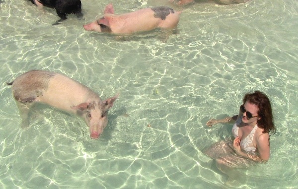 Nếu có cơ hội được ghé thăm bãi biển Big Major Cay - Bahamas, du khách sẽ có cơ hội bơi lội tung tăng cùng với các chú lợn trong là nước biển xanh trong vắt. Những chú lợn được thả tư do để vui chơi dọc bãi biển và bơi lội bất cứ lúc nào chúng muốn. Tuy nhiên việc có thể bị chúng cắn hay không hay những chú lợn này có an toàn không thì không ai có thể trả lời.