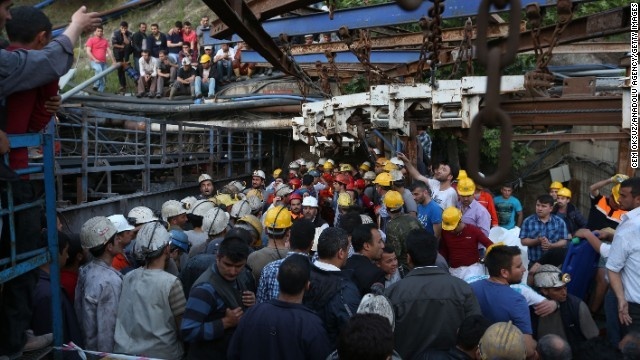 | Hôm 13/5, một vụ hỏa hoạn lớn xảy ra trong mỏ than tại tỉnh Manisa, Thổ Nhĩ Kỳ đã cướp sinh mạng của hơn 300 thợ mỏ và khiến 80 người khác bị thương. Theo điều tra, vụ nổ xảy ra tại một kho điện cách mặt đất 2 km khiến cầu thang máy ngưng hoạt động. Ngọn lửa bốc lên sau khi chập điện và gây nổ. Ảnh: Getty Images |