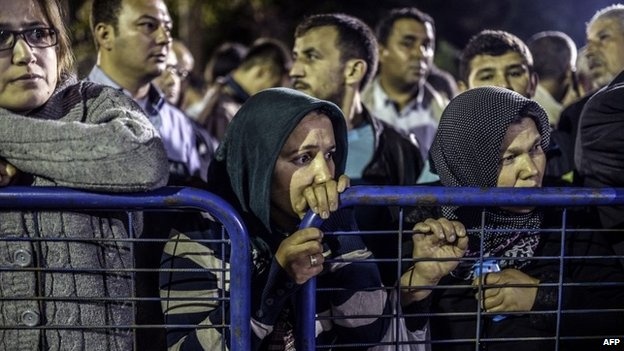 | Người nhà của những công nhân làm việc tại mỏ than ở tỉnh Manisa chờ đợi tin tức của người thân trong sự lo lắng và bất an. Ảnh: AFP |