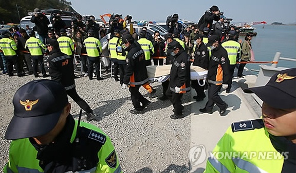 | Nỗi đau nối tiếp nỗi đau. Không khí tang thương bao trùm mọi nơi. Tiếng mẹ khóc con, tiếng bà khóc cháu, tiếng người thân tiễn biệt người thân cất lên đầy ai oán. Ảnh: Yonhap |