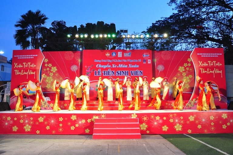 | Ngoài việc được đi chuyến xe miễn phí, các sinh viên còn được thưởng thức chương trình văn nghệ Chào xuân đặc sắc. |