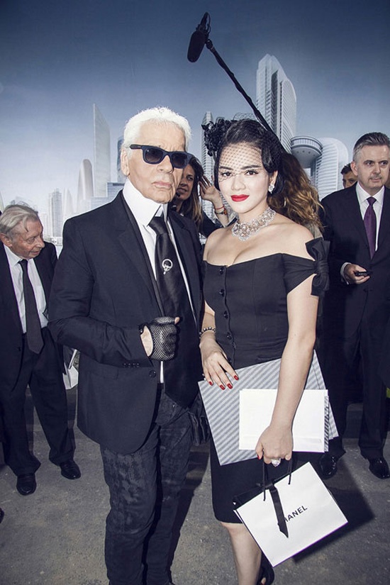 | Lý Nhã Kỳ xuất hiện với tư cách khách VIP và được nhà thiết kế Karl Lagerfeld của thương hiệu đình đám Chanel tiếp đón tại Tuần lễ thời trang Paris Haute Couture Fall 2013. |