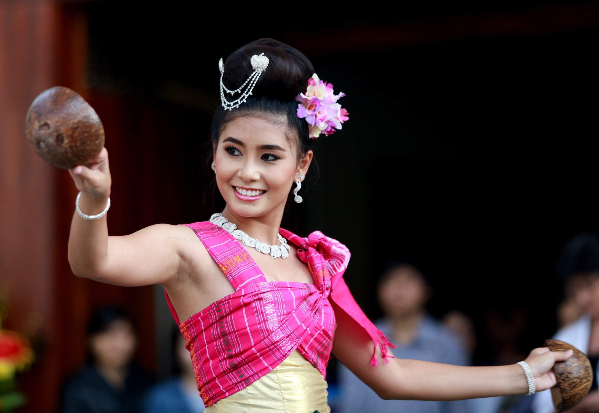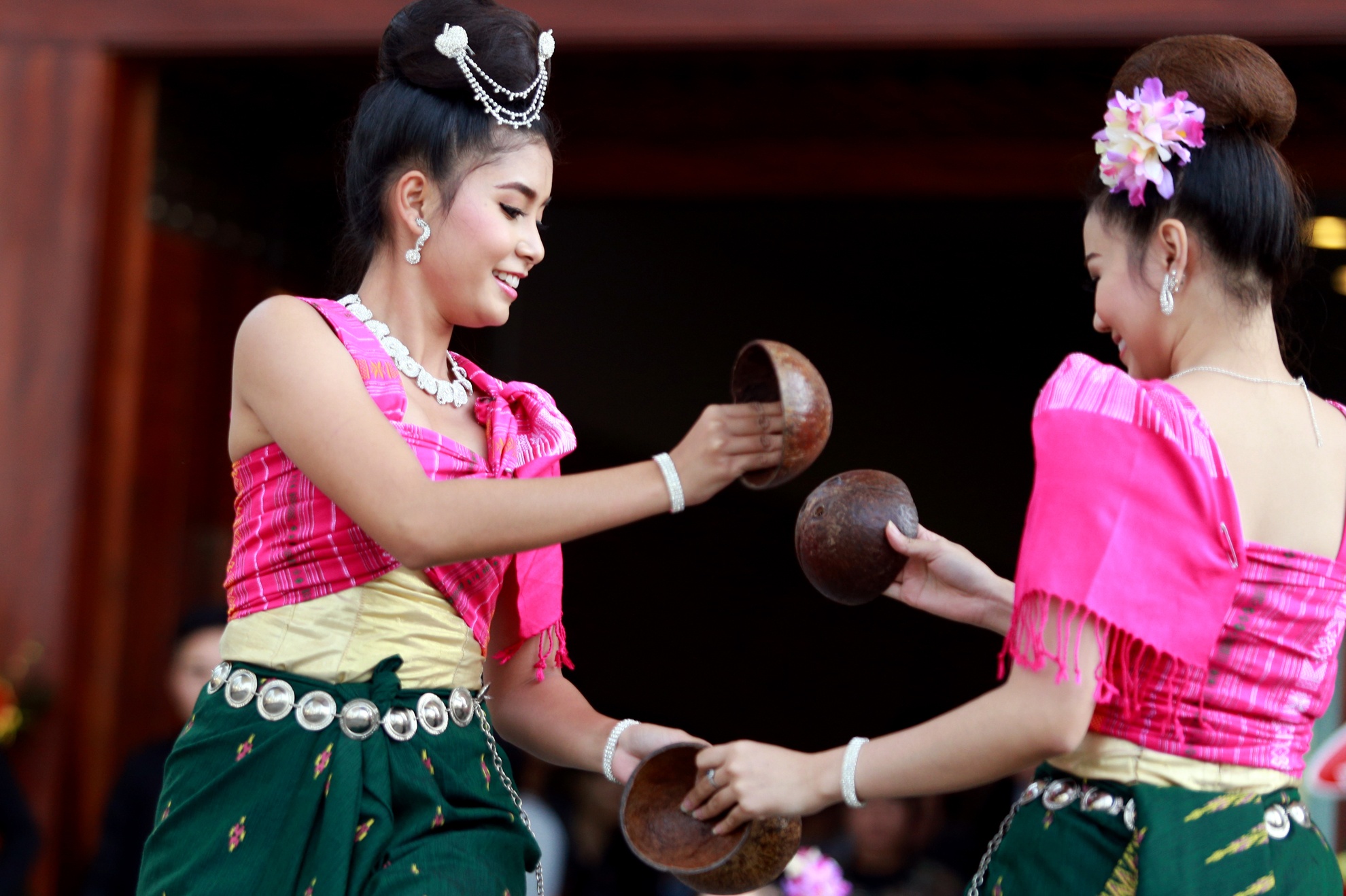 | Tiết mục Sớng-cờrạ-pổ dựa theo trò chơi "Gáo dừa", một trò chơi dân gian ở Thái Lan. |
