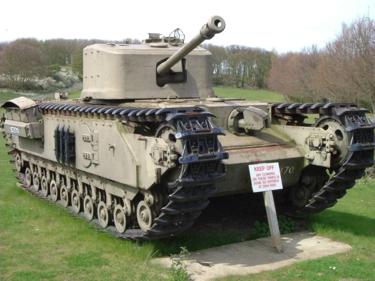 Churchill Crocodile có khả năng phun lửa và được Anh sử dụng trong Thế chiến II. Khi hoạt động, nó mang theo 1.800 lít nhiên liệu và khí nitơ lỏng ở một bể chứa phía sau. Trên chiến trường, Churchill Crocodile sẽ phun lửa để diệt hỏa lực đối phương hoặc buộc địch đầu hàng. Ngoài ra, nó có thể chiến đấu như một xe tăng bình thường. Thùng chứa nhiên liệu phụ sẽ bị vứt bỏ để tăng tính cơ động của xe. |