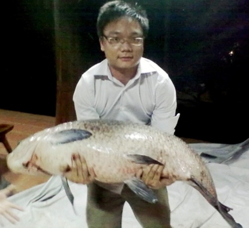 | “Thủy quái” cá trắm đen do hai bố con anh Phùng Thế Hùng săn được sau 2 năm nhử mồi tại hồ khu 3 thuộc khu du lịch Thiên Sơn Suối Ngà - Ba Vì - Hà Nội. Cá nặng gần 30kg, dài đến gần 1,5m. |