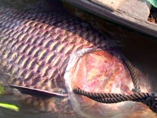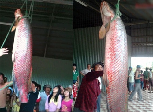 Năm ngoái, ngư dân ở huyện Phú Tân - An Giang đã bắt được con cá hô nặng 120 kg trên Sông Vàm Nao. Cá có chiều dài khoảng 2,5m, chiều ngang gần 1,5m. Phải 4 người khiêng mới cân được con cá.