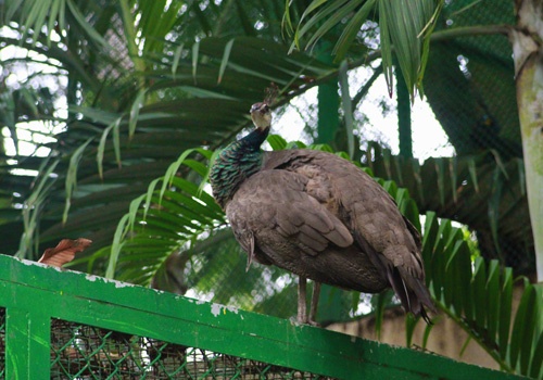 Một số chú công không bị nhốt, thoải mái “dạo chơi” trong vườn thú. |