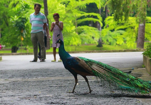 Trong khi đó, các chú công, gà lôi lại “dạo chơi”, kiếm ăn trên các thảm cỏ, bụi cây mà không sợ du khách.
