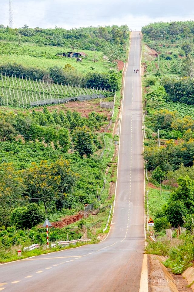 Tuyến đường tránh thành phố Pleiku (Gia Lai) có con dốc dựng đứng được bao quanh bởi khung cảnh xanh mướt của núi rừng. Thoạt nhìn, độ dốc của đường gần như góc 90 độ, những người từng đi qua cho biết việc di chuyển không quá khó. Tuy nhiên, bạn cần chú ý tốc độ khi đi qua. Dọc hai bên đường, du khách có thể ngắm nhìn vườn cà phê, vườn bơ, vườn cao su... Ngoài ra, bạn còn có cơ hội tham quan nông trường chè Bàu Cạn thuộc huyện Chư Prông. Ảnh: Chu Thế Dũng. |