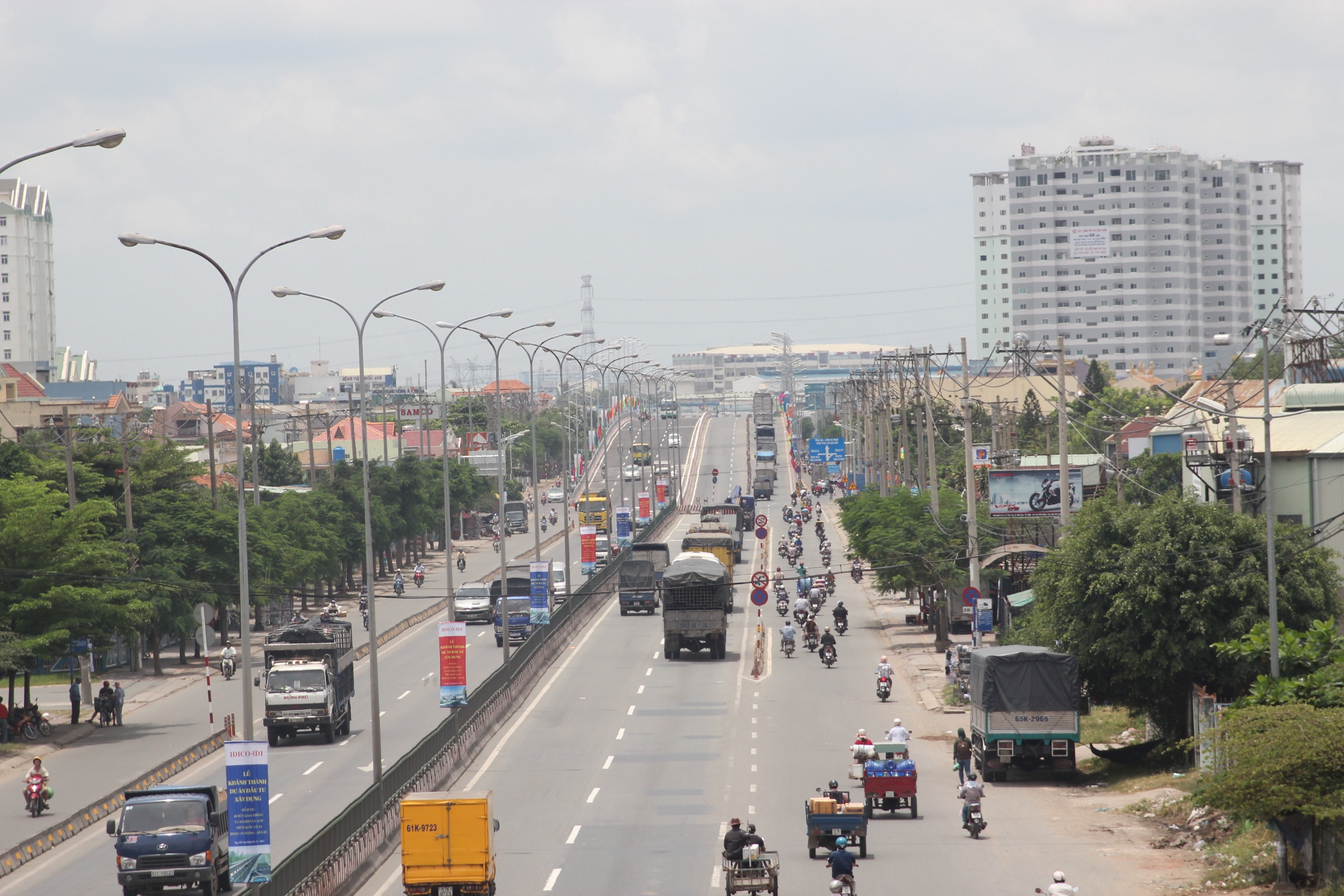 Ngày 30/8, công ty cổ phần đầu tư phát triển hạ tầng IDICO tổ chức khánh thành 2 cầu vượt trên tuyến Quốc lộ 1, gồm cầu vượt Quốc lộ 1 - Tỉnh lộ 10B và cầu vượt Quốc lộ 1 - Tỉnh lộ 10. Trong ảnh: Cầu vượt Quốc lộ 1 - Tỉnh lộ 10 với tổng chiều dài 635m, rộng 24m, quy mô 6 làn xe.