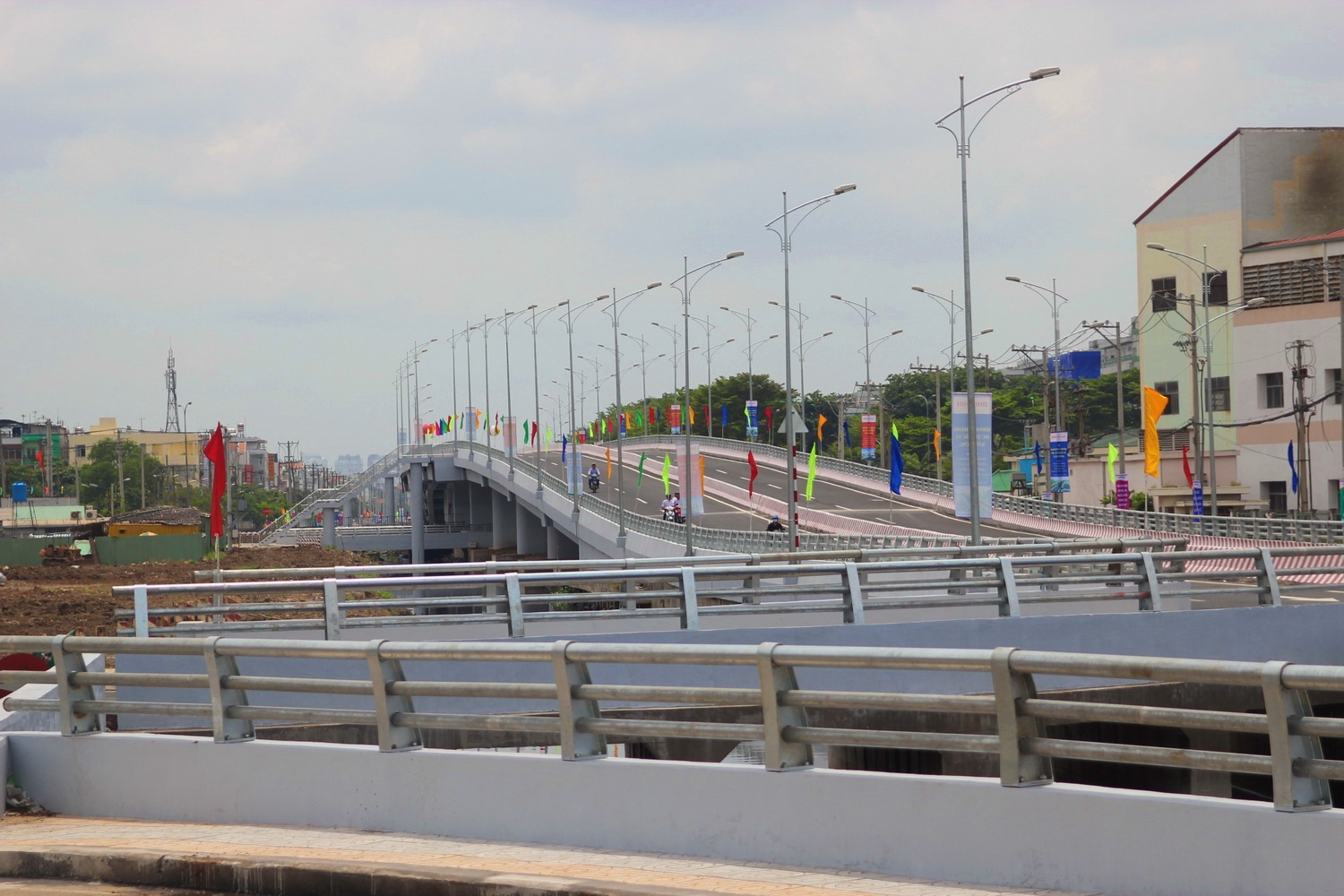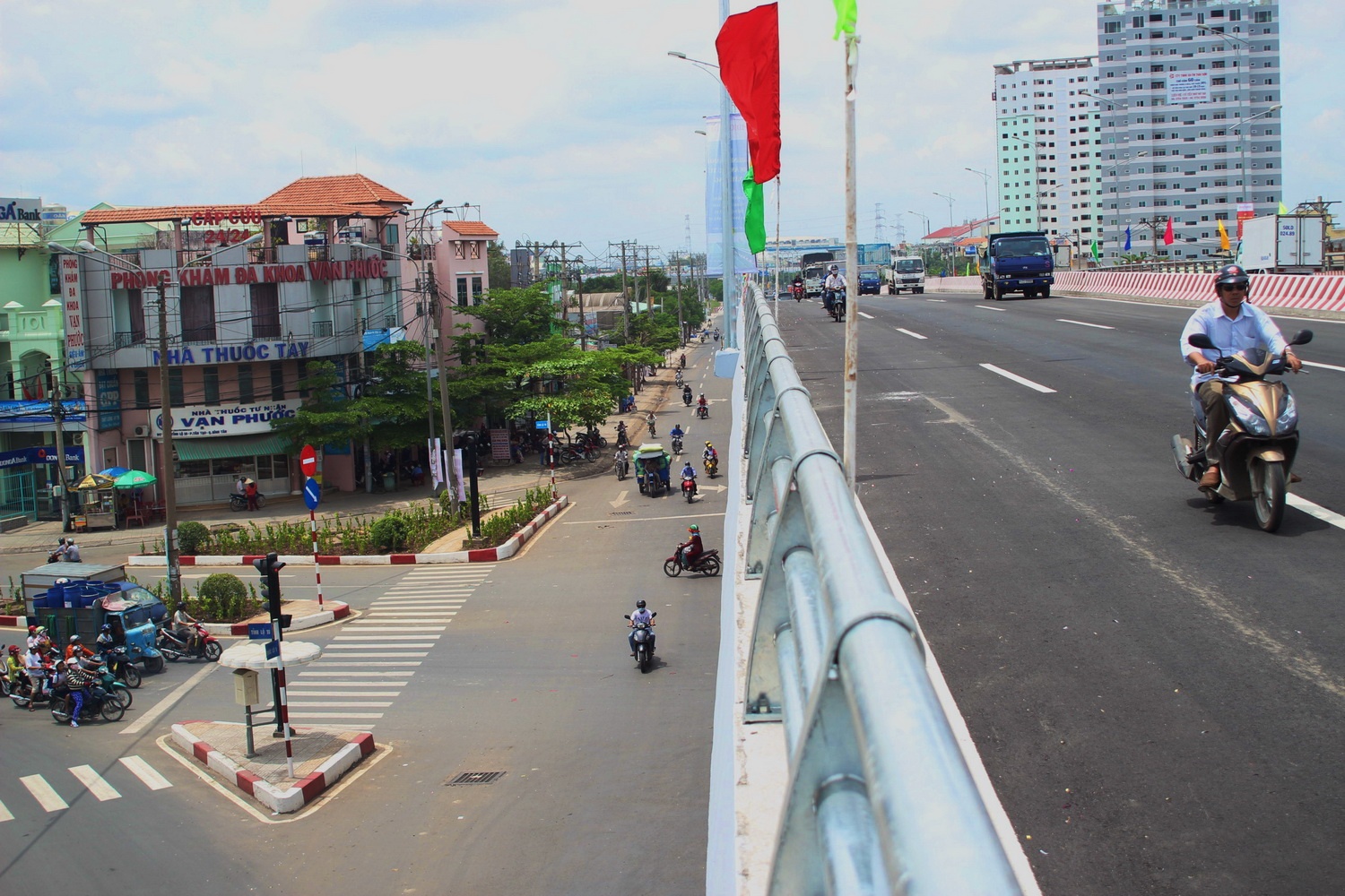 Cầu vượt Quốc lộ 1 và Tỉnh lộ 10B có tổng chiều dài 886m, rộng17m, quy mô 4 làn xe.