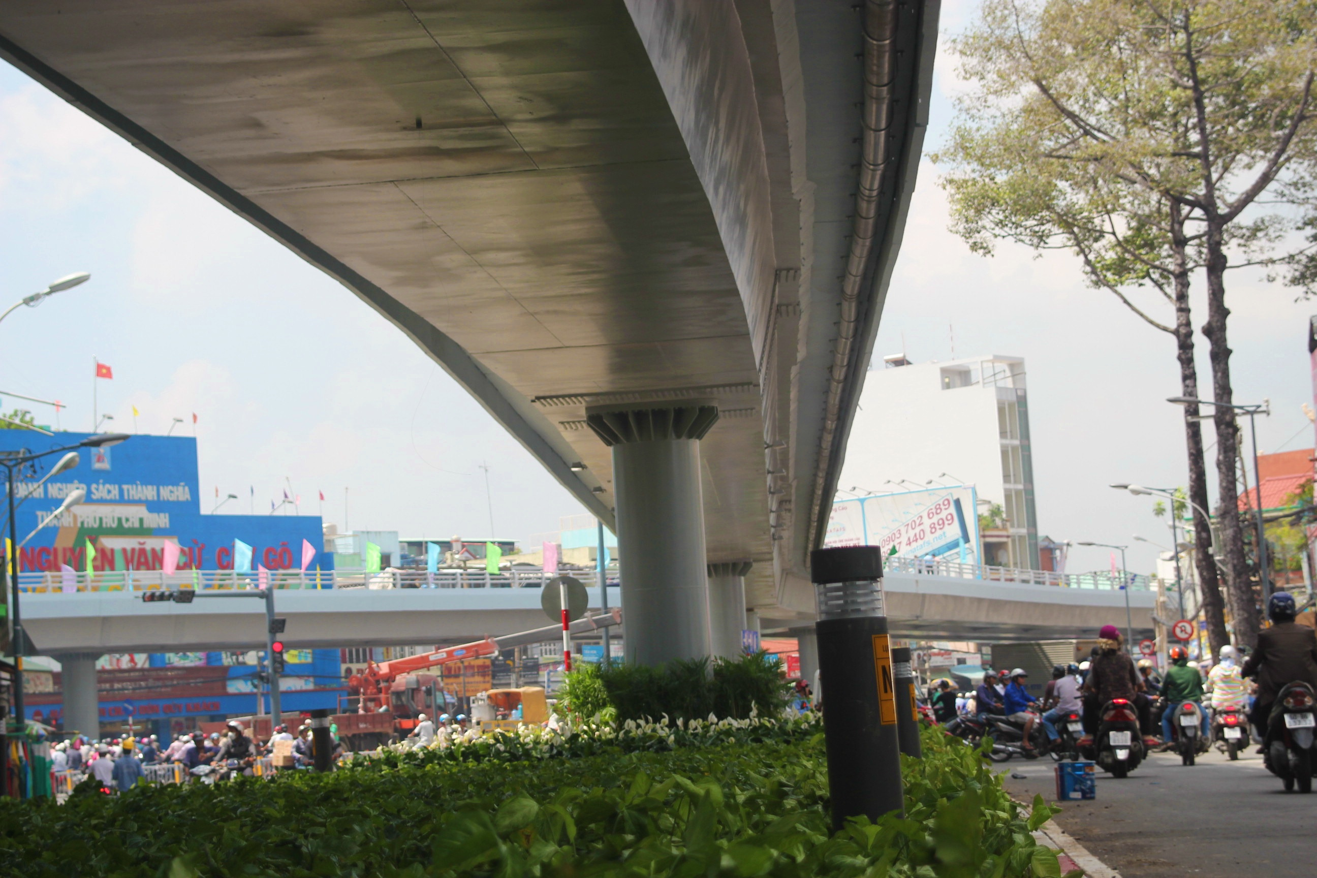 | Năm 2013, TP.HCM tiếp tục xây thêm 4 cầu vượt thép tại các nút giao Lăng Cha Cả; bùng binh Cây Gõ, Nguyễn Tri Phương - 3/2 - Lý Thái Tổ và Cộng Hòa - Hoàng Hoa Thám... Trong ảnh: Cầu vượt hình chữ Y bùng binh Cây Gõ (Q.11 và Q.6). |