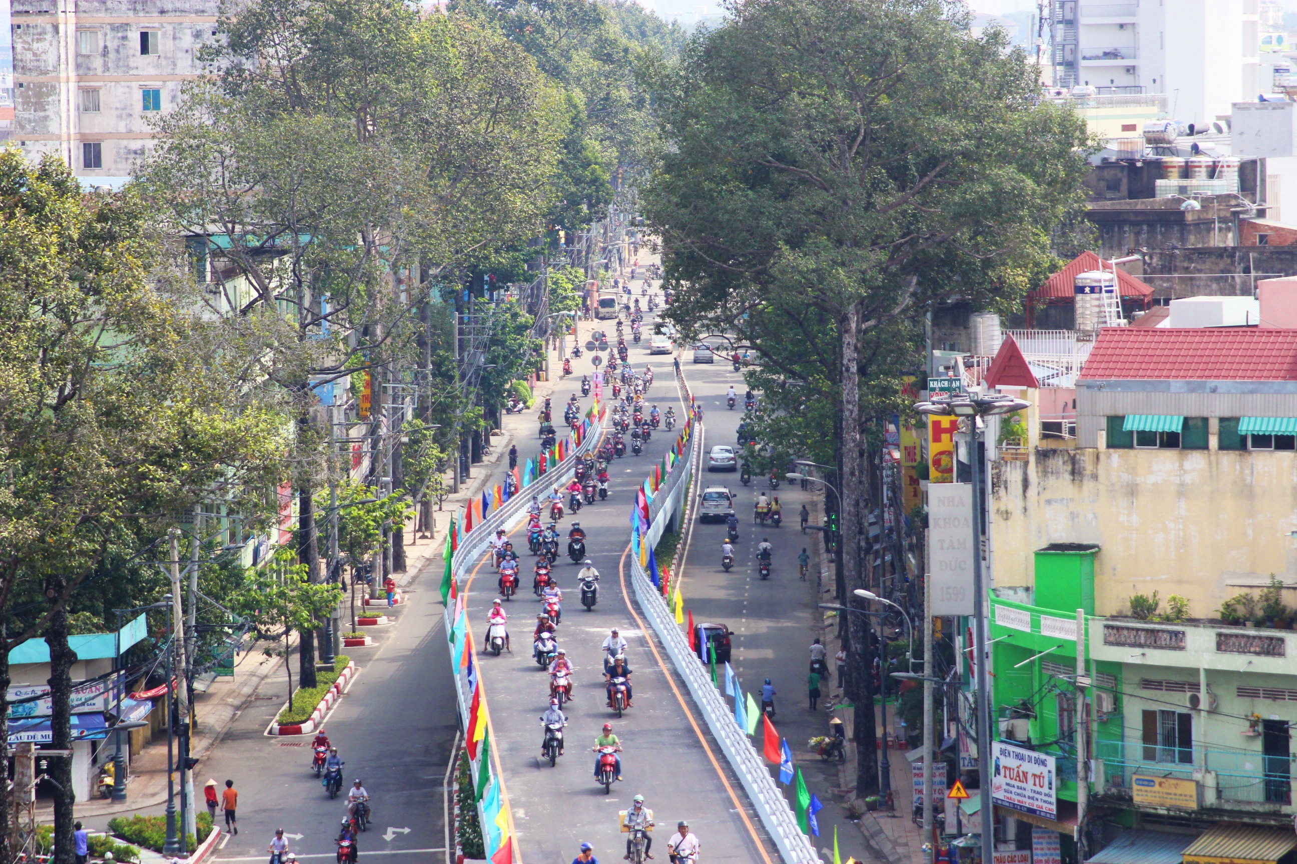 | Sau 5 năm thi công, sáng 28/9, đoạn từ nút giao thông Nguyễn Thái Sơn đến ngã tư Bình Triệu, dài khoảng 4,7km, đã được đưa vào sử dụng. |