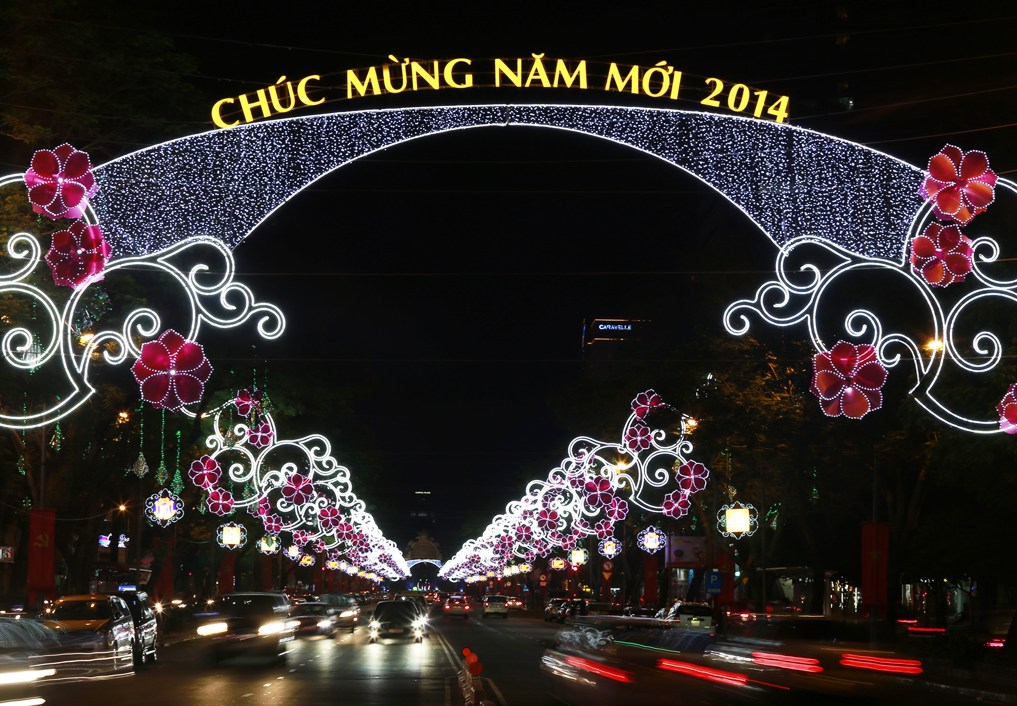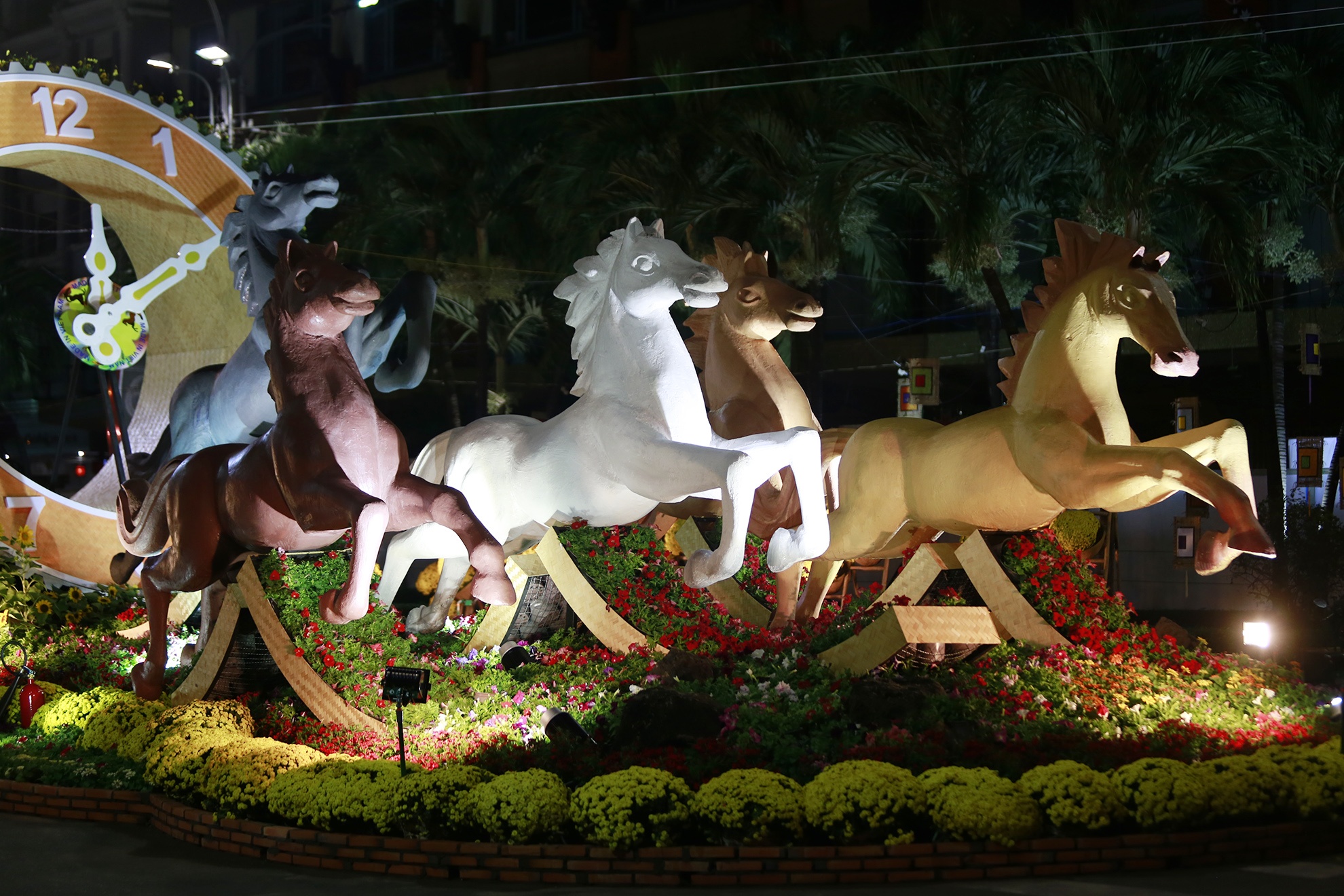 | Đường hoa Nguyễn Huệ nổi tiếng với các biểu trưng năm Giáp Ngọ 2014. |