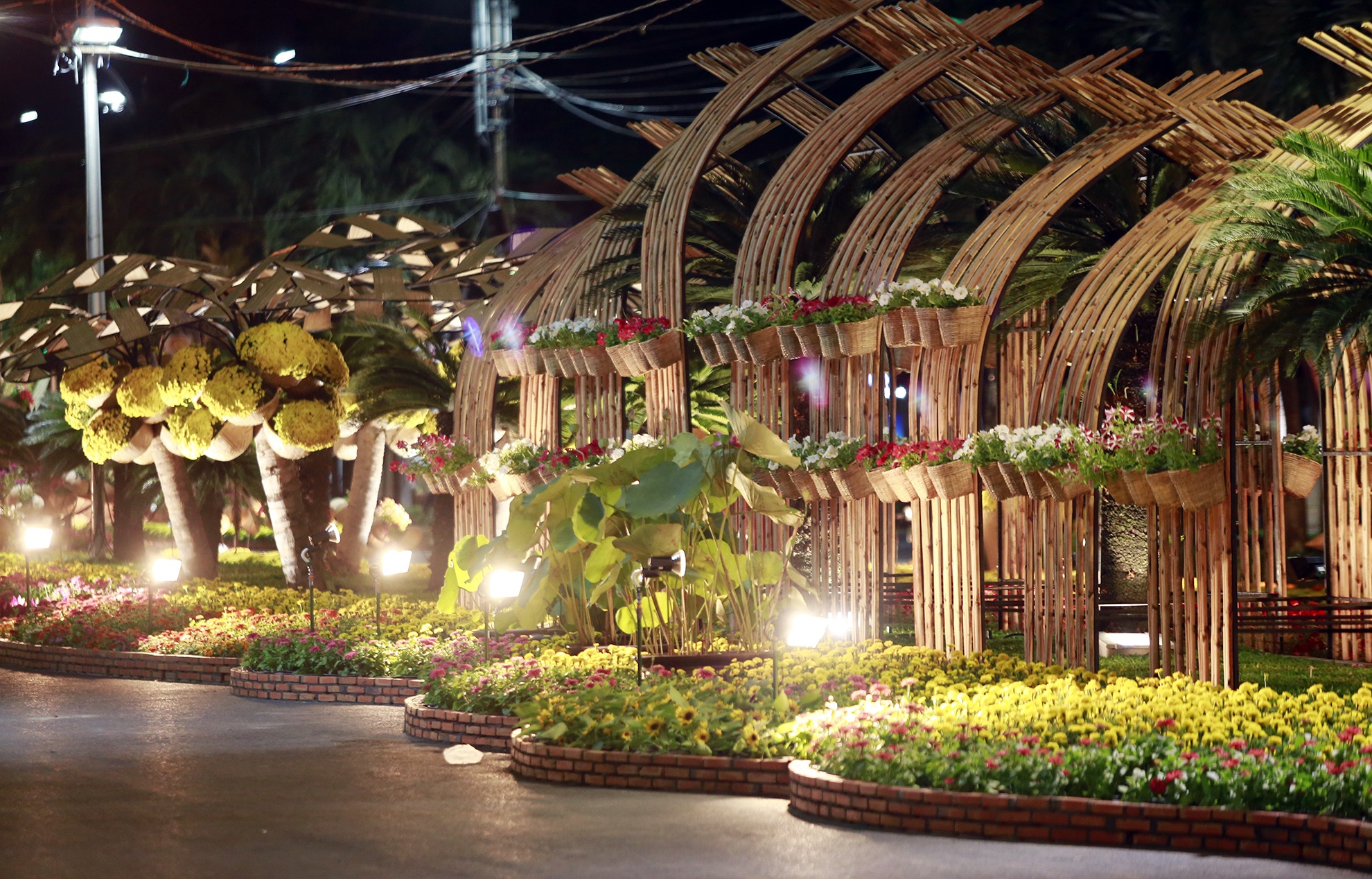 | Đường Hoa Nguyễn Huệ và các con phố xung quanh được trang trí đậm chất xuân. |