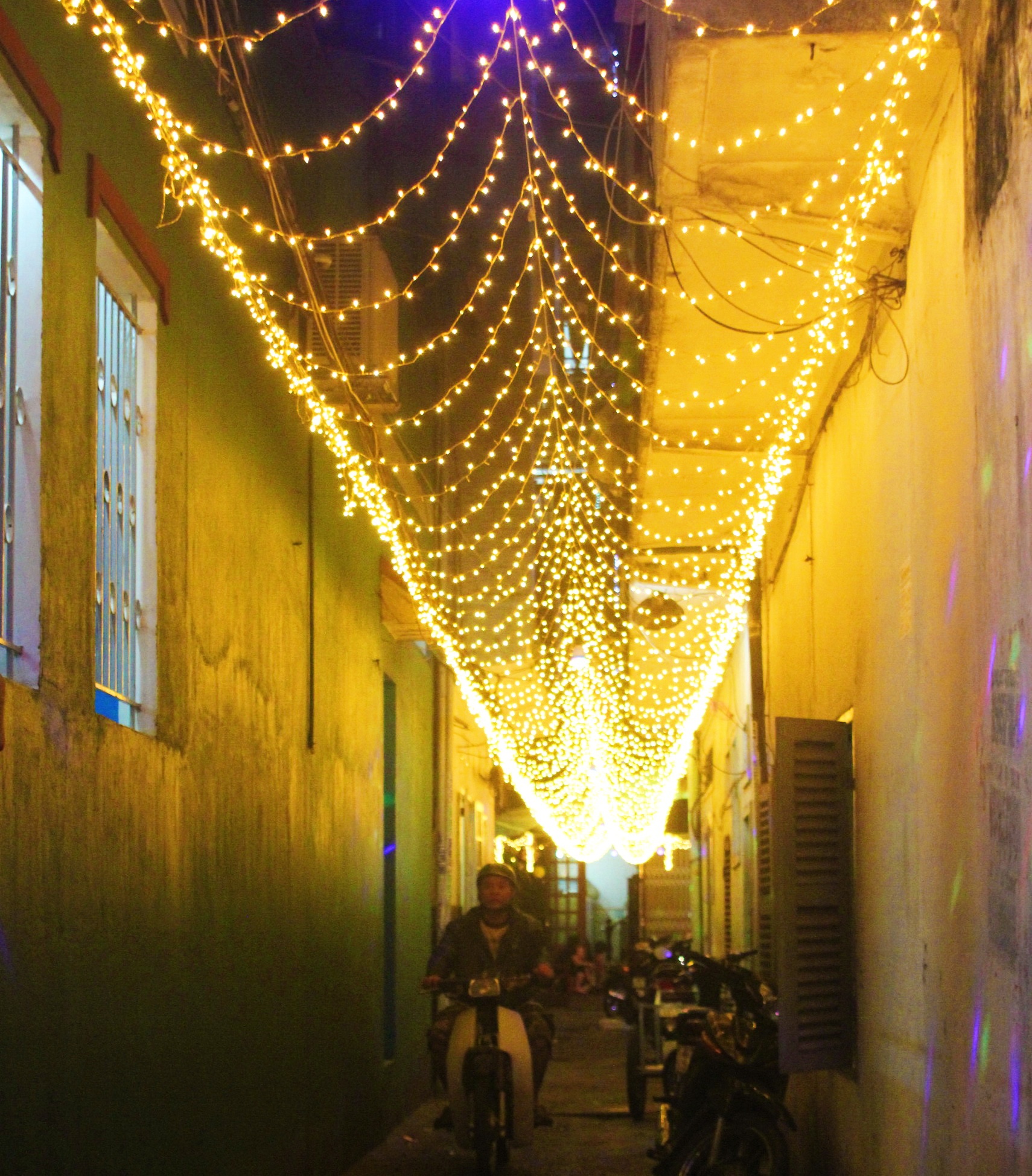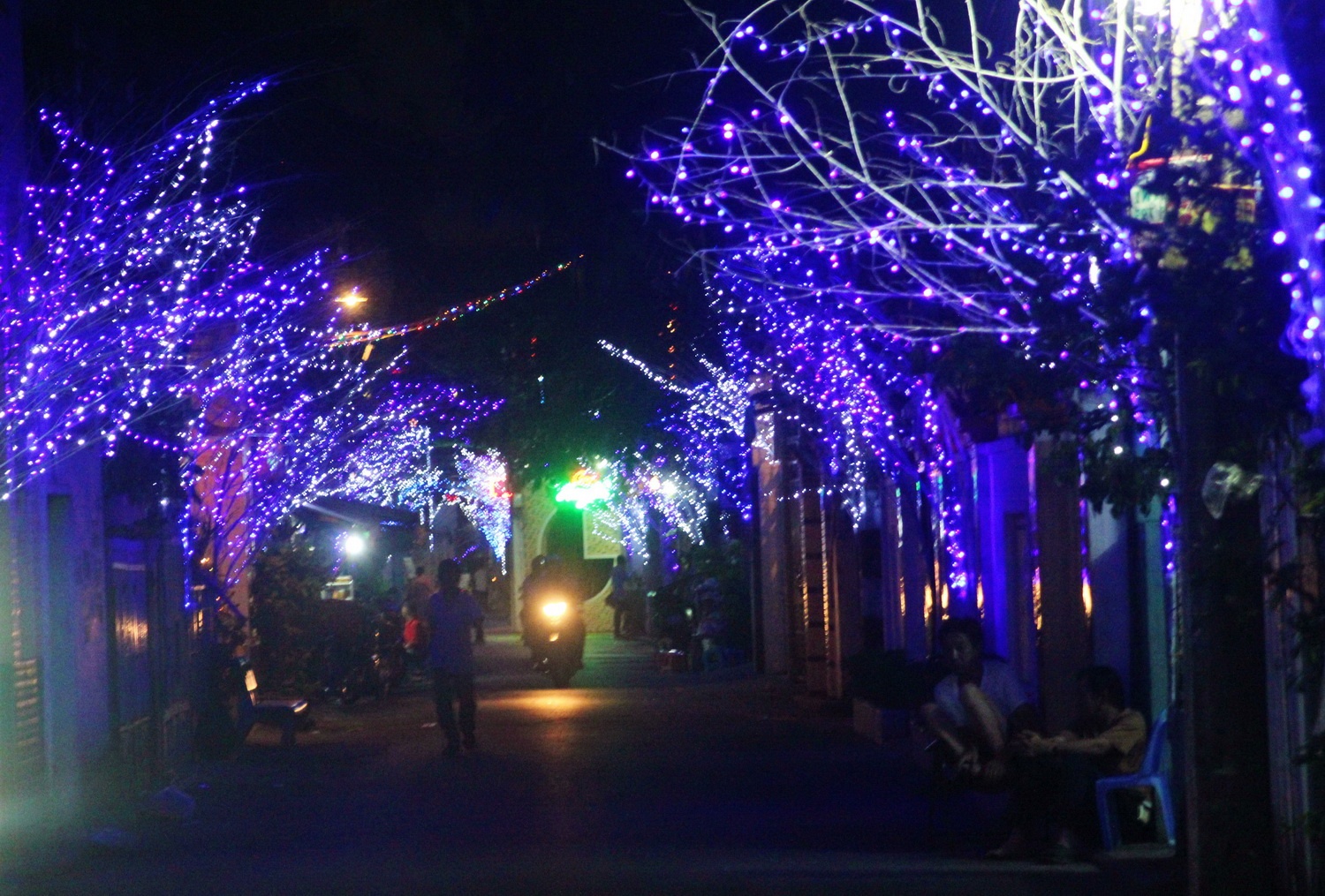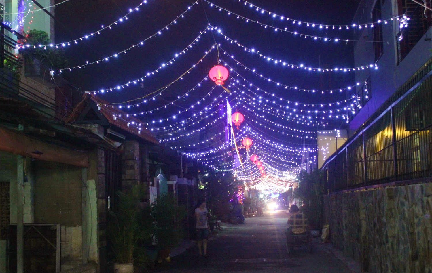 Bình thường con hẻm này tối om, những những ngày cuối năm bỗng sáng rực.