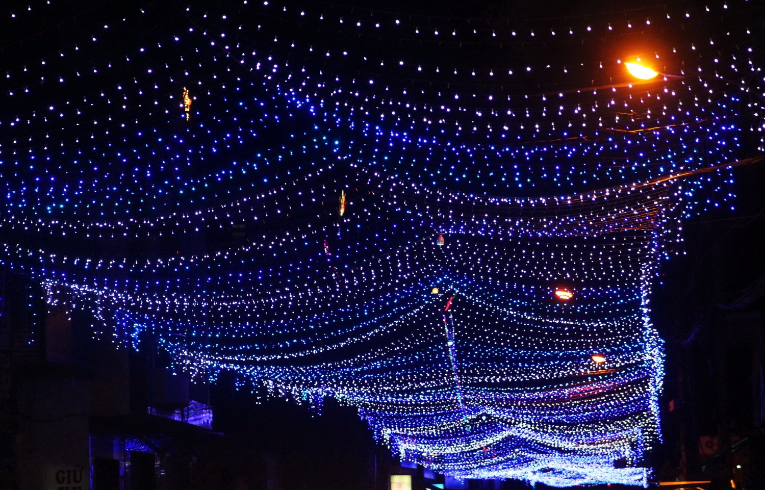 Người dân dạo bước dưới hàng ngàn bóng đèn nhấp nháy tại hẻm 157 đường CMT8, Q.Tân Bình.