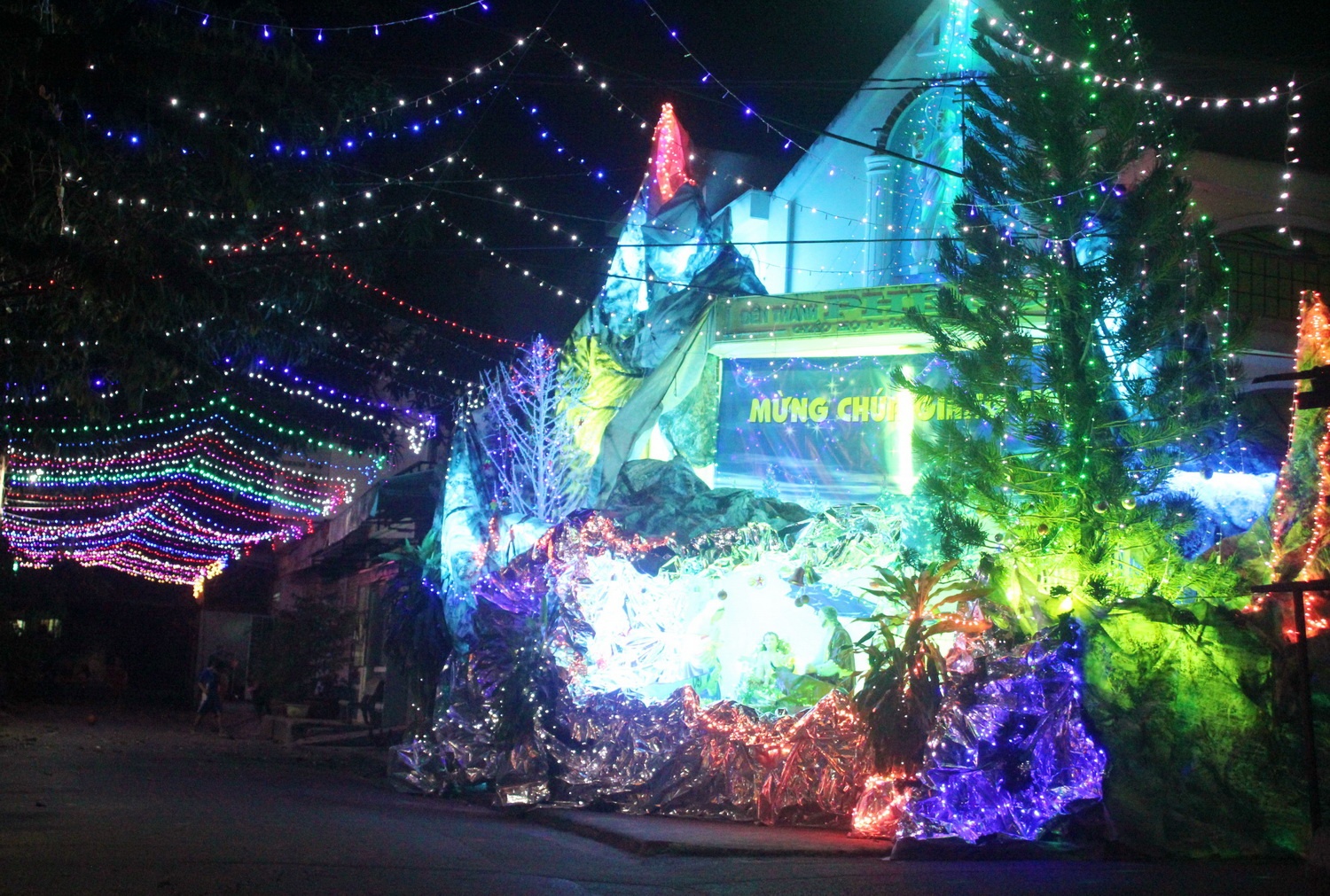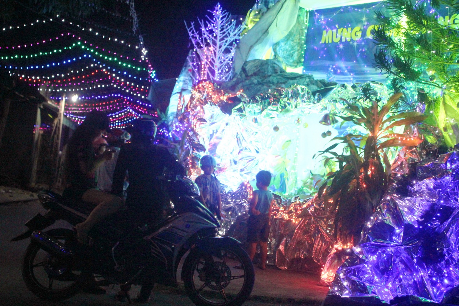 Đi chơi Noel sớm tại các khu phố, con hẻm ở Sài Gòn. Trong ảnh: Một đền thánh được trang trí tại KP1, P.Tân Thới Nhất, Q.12 thu hút nhiều người tới ngắm nhìn, chụp ảnh.