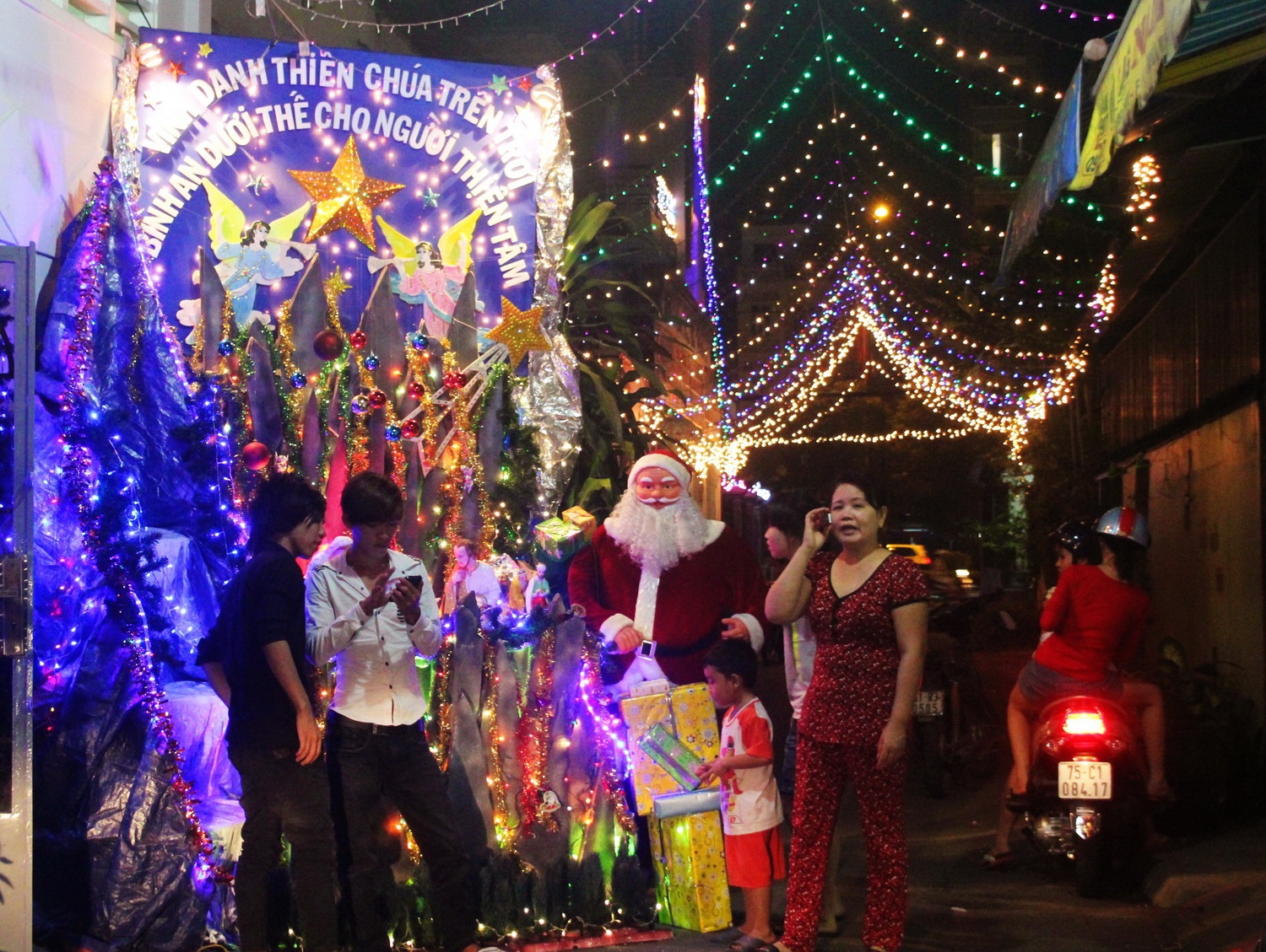 Không khí Noel tràn nhập khắp các khu phố, con hẻm ở Sài Gòn. Trong ảnh: Người dân dạo chơi trên đường Bùi Thị Xuân, KP3, P.2, Q.Tân Bình.