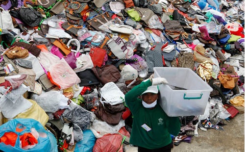 | Hàng fake bị tiêu hủy tại Bangkok, Thái Lan năm 2011. |