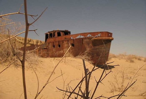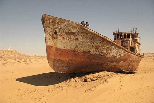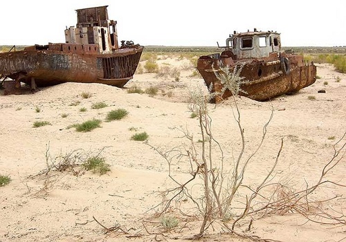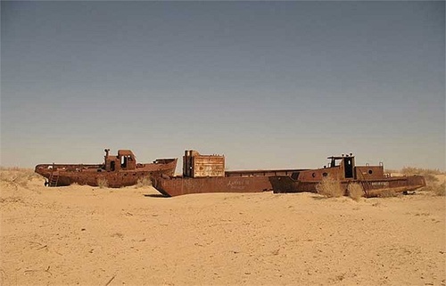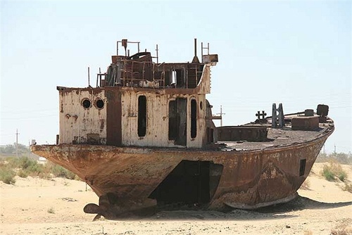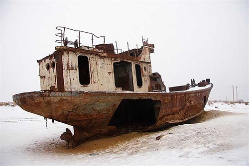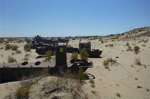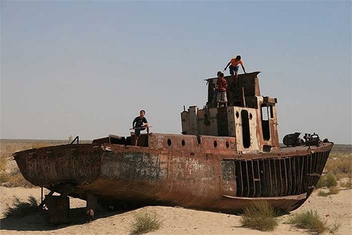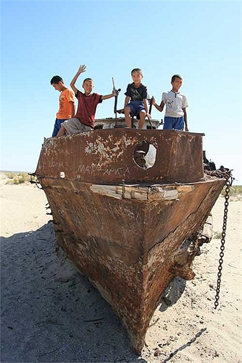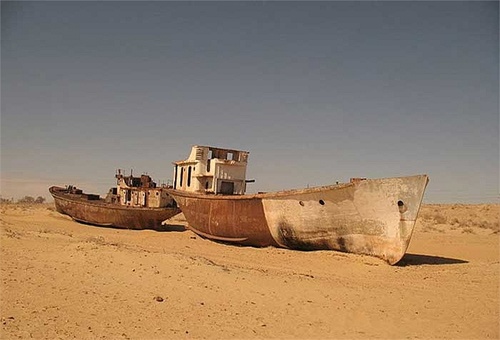 | Đó là hậu quả của thảm họa môi trường mà con người đã gây ra: những con tàu chết trên một vùng biển chết. |