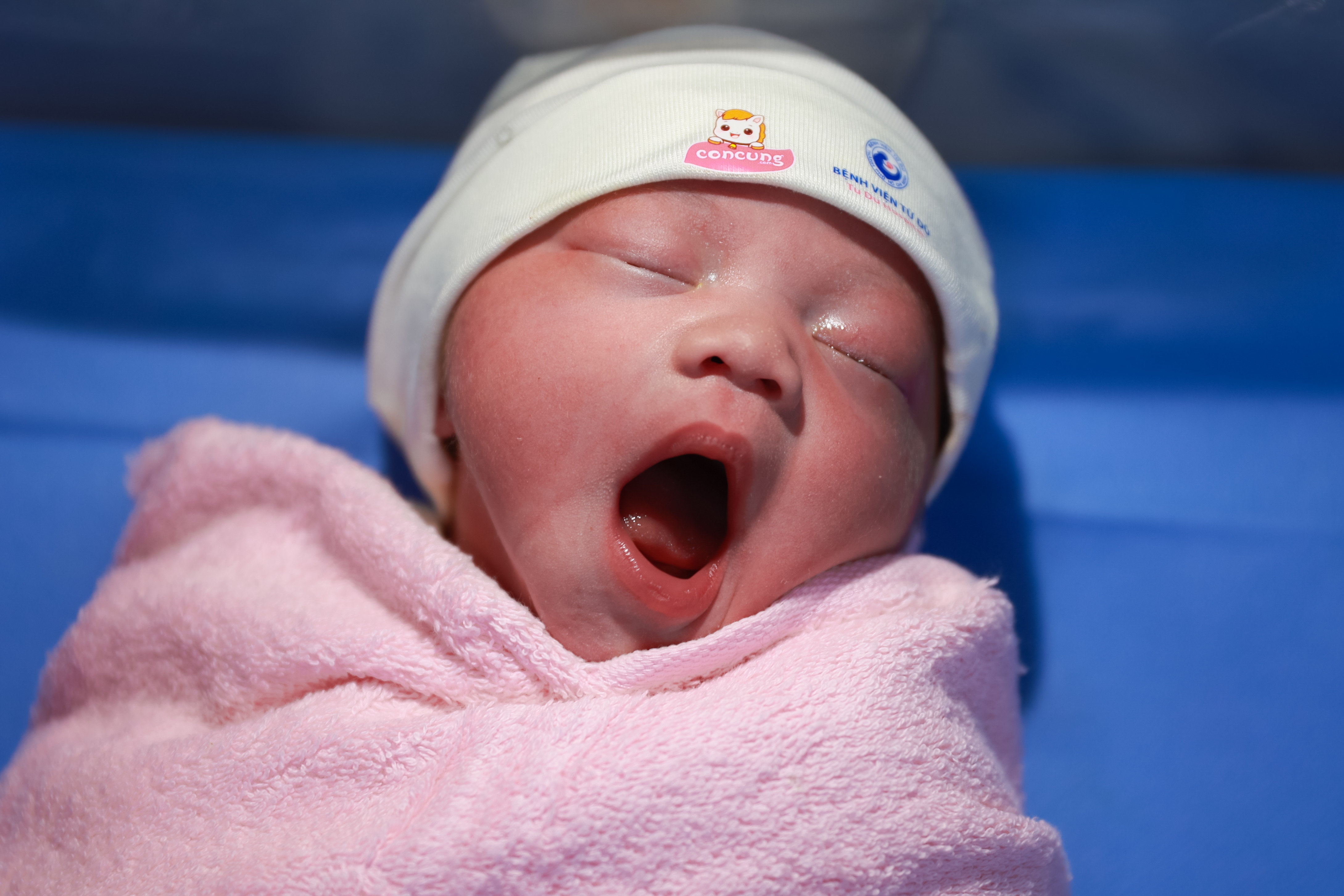 Dưới ánh đèn vàng ấm áp, những công dân nhí đỏ hỏn được đặt nằm bình yên trên ngực mẹ theo phương pháp “da kề da”. Trong khoảnh khắc ấy, sắc trắng dịu nhẹ cùng hình ảnh chú ngựa vàng trên chiếc mũ sơ sinh kháng khuẩn như “điểm chạm” đầu đời nâng niu, che chở cho các bé.