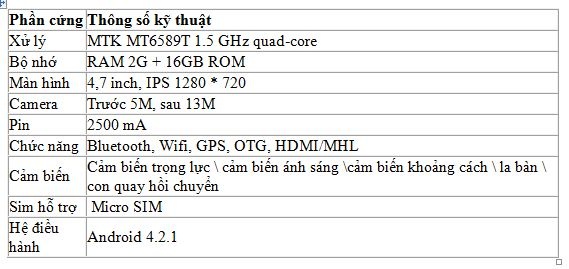 Điện thoại sẽ được hỗ trợ bởi MediaTek bốn nhân, quy trình 28nm, hỗ trợ cho WCDMA / TD-SCDMA, hỗ trợ 1080p và tích hợp bộ vi xử lý đồ họa PowerVR SGX 544, 16GB bộ nhớ, sử dụng RAM 2GB.