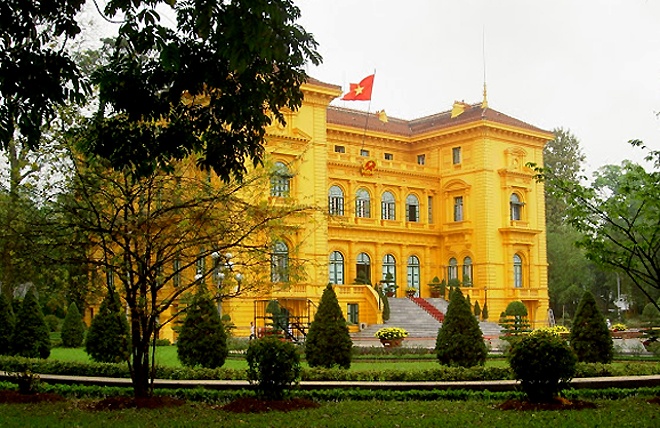 | Phủ toàn quyền Đông Dương do kiến trúc sư Charles Lichtenfelder thiết kế và được xây dựng trong những năm 1901-1906 với quy mô hoành tráng, uy nghiêm và quyền lực. Đây là một trong những dinh thự lớn nhất được Pháp xây ở Đông Dương, toà nhà có phong cách hoàn toàn Châu Âu. Năm 1945, toà nhà được đổi tên thành Phủ Chủ Tịch. Trong 15 năm, từ năm 1945 đến năm 1969, tại đây, Chủ tịch Hồ Chí Minh đã tiếp trên 1000 đoàn đại biểu trong nước và ngoài nước. |