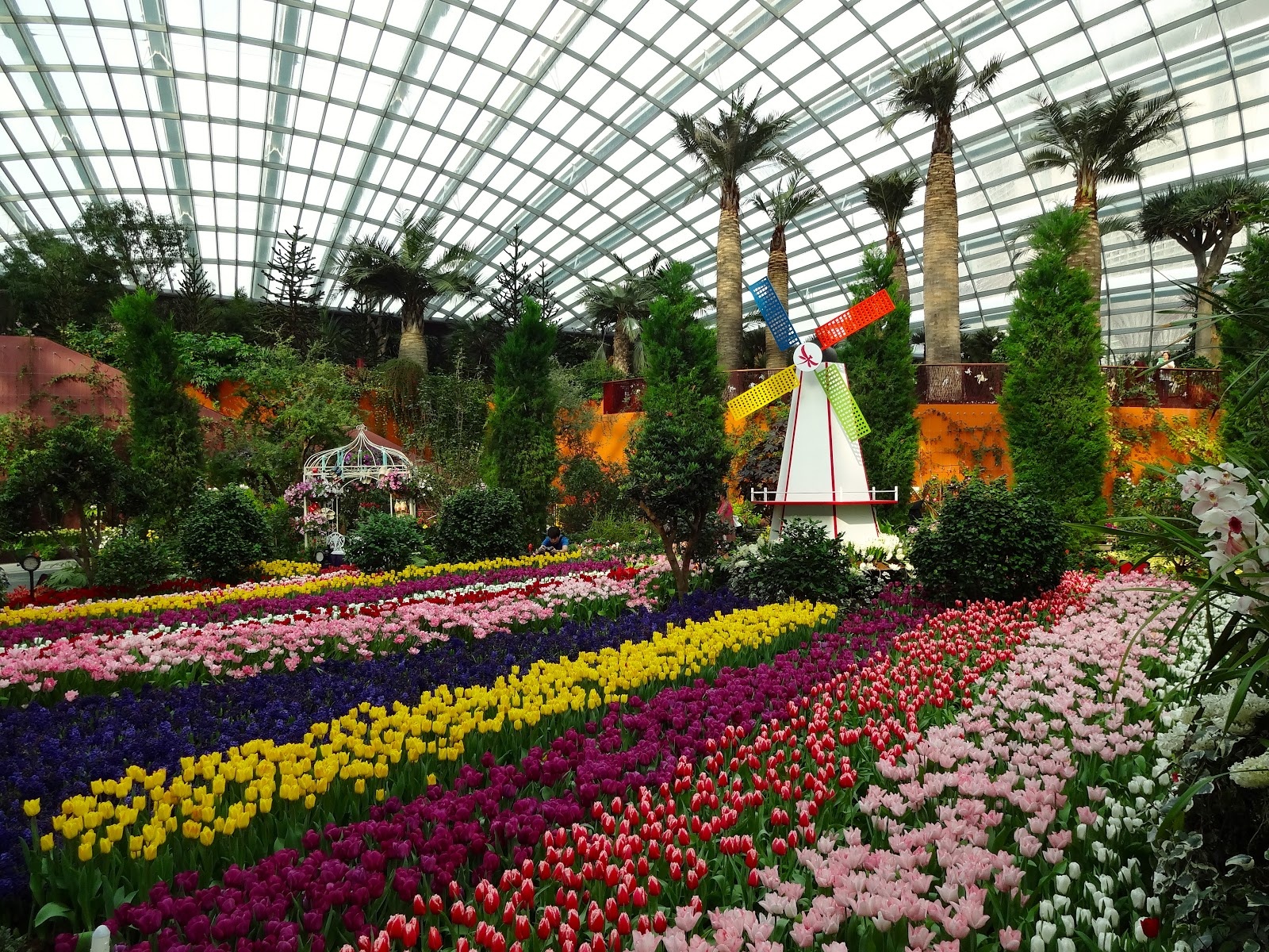 Tổ hợp công trình bao gồm nhà kính được gọi là Nhà Hoa, nơi các nhà thiết kế tạo ra những khu có điều kiện khí hậu đặc thù của Địa Trung Hải, Australia, Nam Mỹ hay Nam Phi cho cây cối phát triển. Du khách tới đây có thể ngắm nhìn các loại thực vật điển hình trên khắp thế giới. Ảnh: Wikipedia |