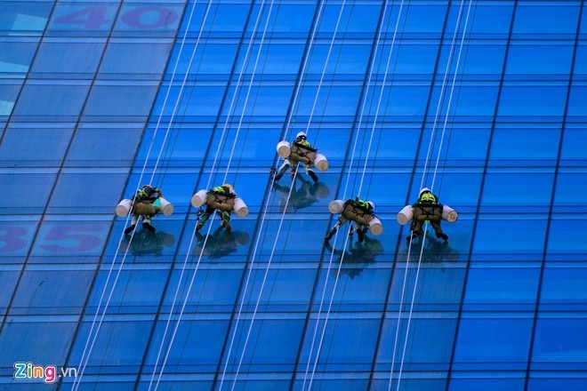 Một “người nhện” vệ sinh tại tòa nhà cao thứ 2 Việt Nam chia sẻ: “Để lau kính cho những tòa nhà chọc trời, chúng tôi phải dày dạn kinh nghiệm, khả năng tập trung cao, làm việc nghiêm túc và có thần kinh rất vững. Không hội đủ những yếu tố ấy thì một là bỏ việc, hai là mất mạng”.
