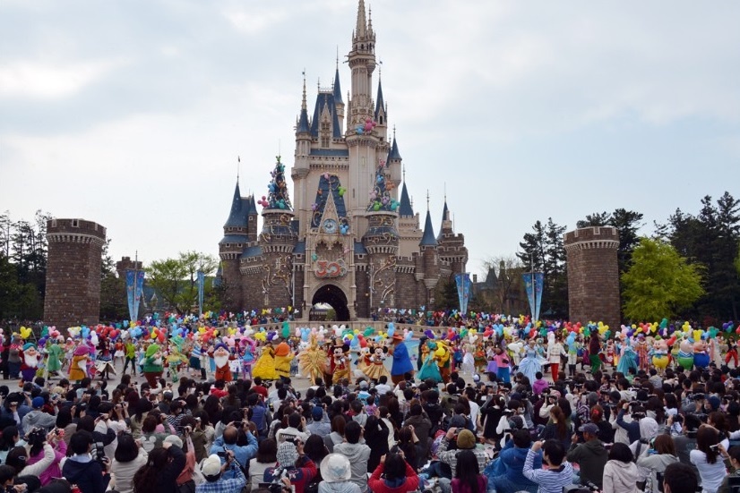 | Hàng nghìn du khách đang vui chơi ở Tokyo Disneyland, Nhật Bản. |