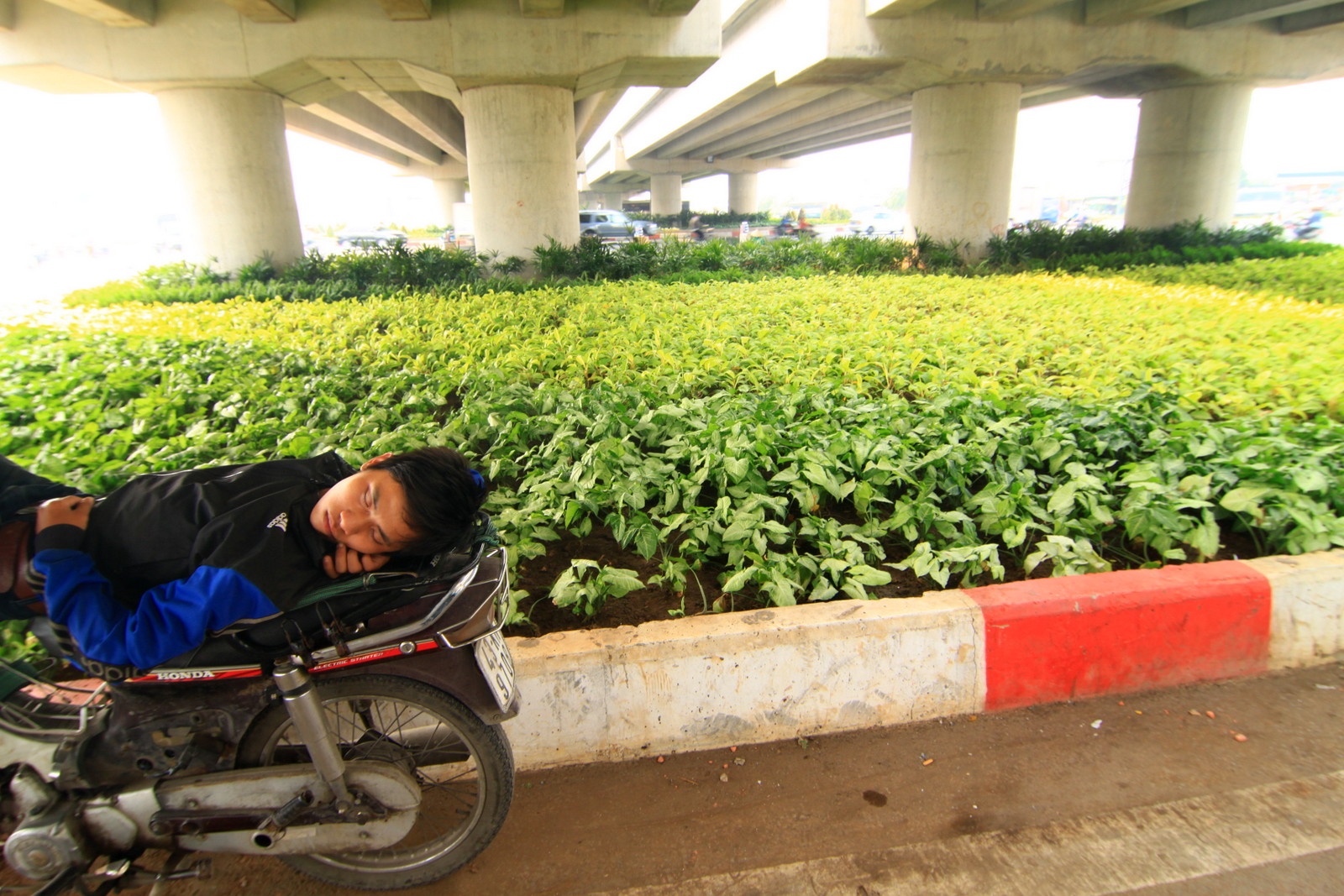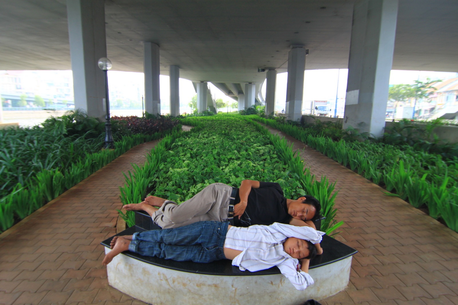 | Nhiều người ra công viên dưới cầu Calmette để ngủ trưa. |
