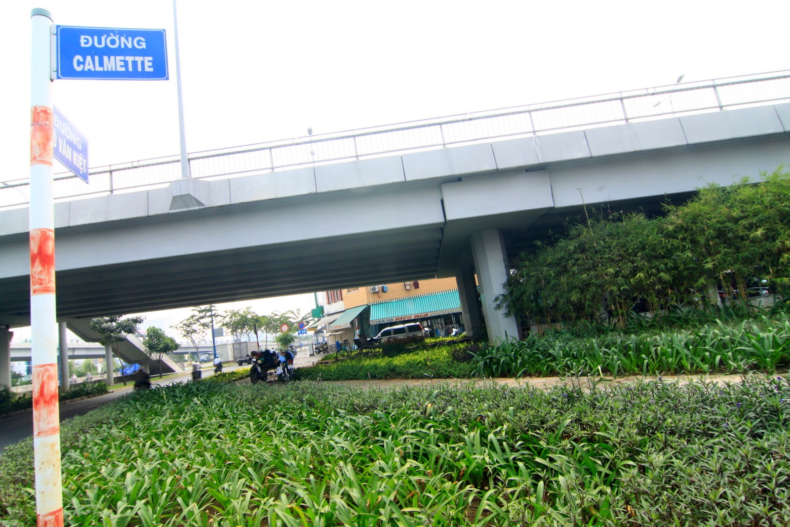 Cầu Calmette bắc qua kênh Bến Nghé, nối Q.1 và Q.4 có 6 nhánh chính, 4 nhánh phụ. Dưới dạ các nhánh cầu được phủ xanh bởi cây cỏ.