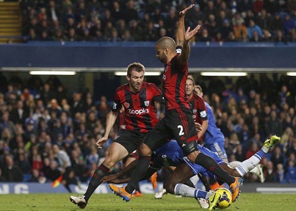 Ghi bàn trước nhưng những sai lầm liên tục của hàng thủ và sự chủ quan đã khiến Chelsea phải trả giá khi thua liên tiếp 2 bàn chỉ trong vòng ít phút đầu của hiệp 2. Càng chơi càng bế tắc lại đối mặt với thủ môn Myhill vô cùng xuất sắc của West Brom khiến việc tìm kiếm bàn thắng với các học trò của HLV Jose Mourinho càng thêm khó khăn. Thật may là đúng ở phút cuối cùng của trận đấu, tiền vệ người Brazil Ramires đã có pha ngã vờ cực khéo mang về một quả penalty và Hazard đã thực hiện hành công giữ lại 1 điểm đầy thất vọng cho đội bóng áo xanh.