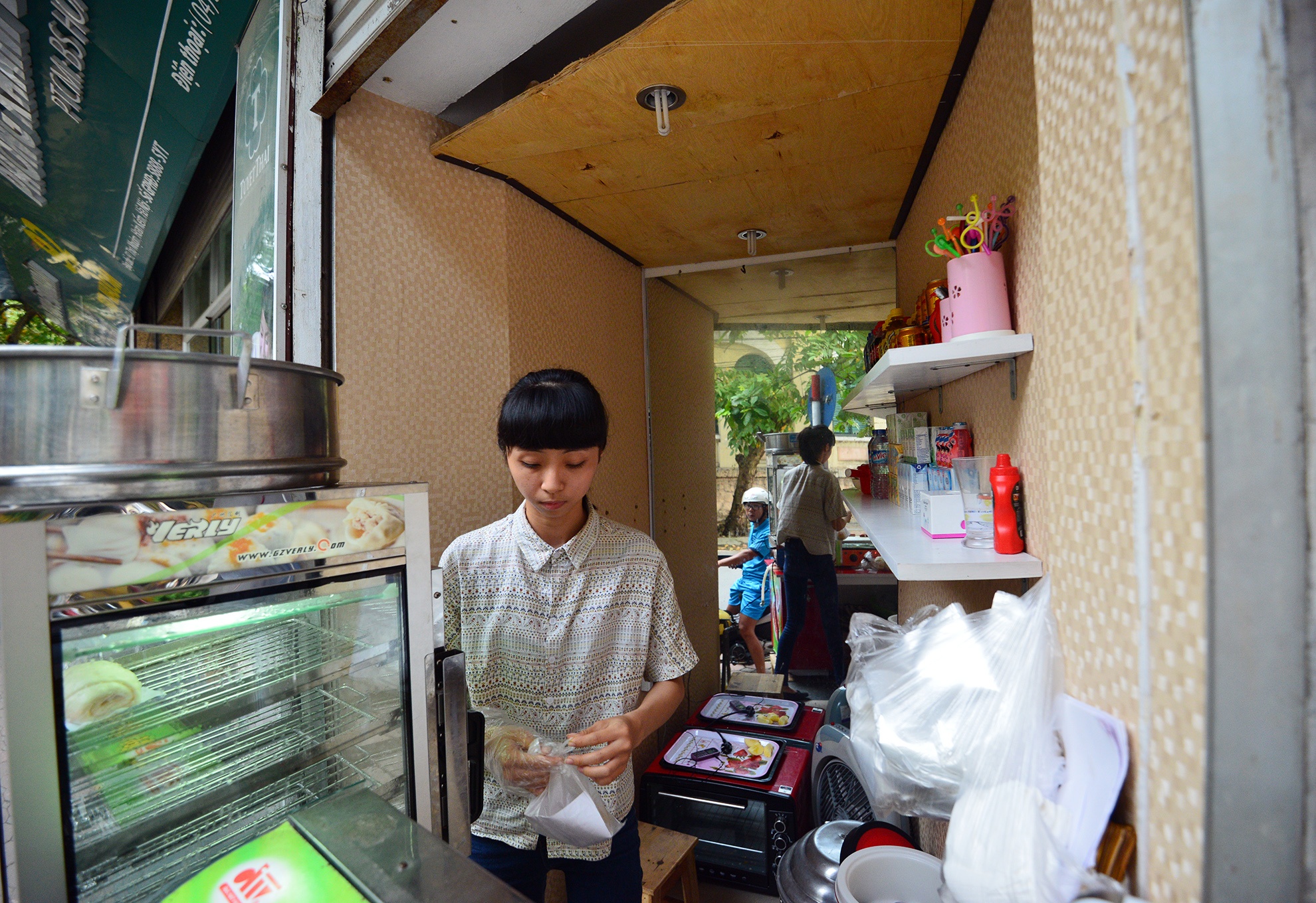 Bà chủ cho biết đã thuê lại chỗ bán hàng này với giá 7 triệu đồng/tháng. Tuy nhiên, cửa hàng có lợi thế gần khu dân cư đông đúc và các cơ quan, công sở nên hàng bán rất chạy.