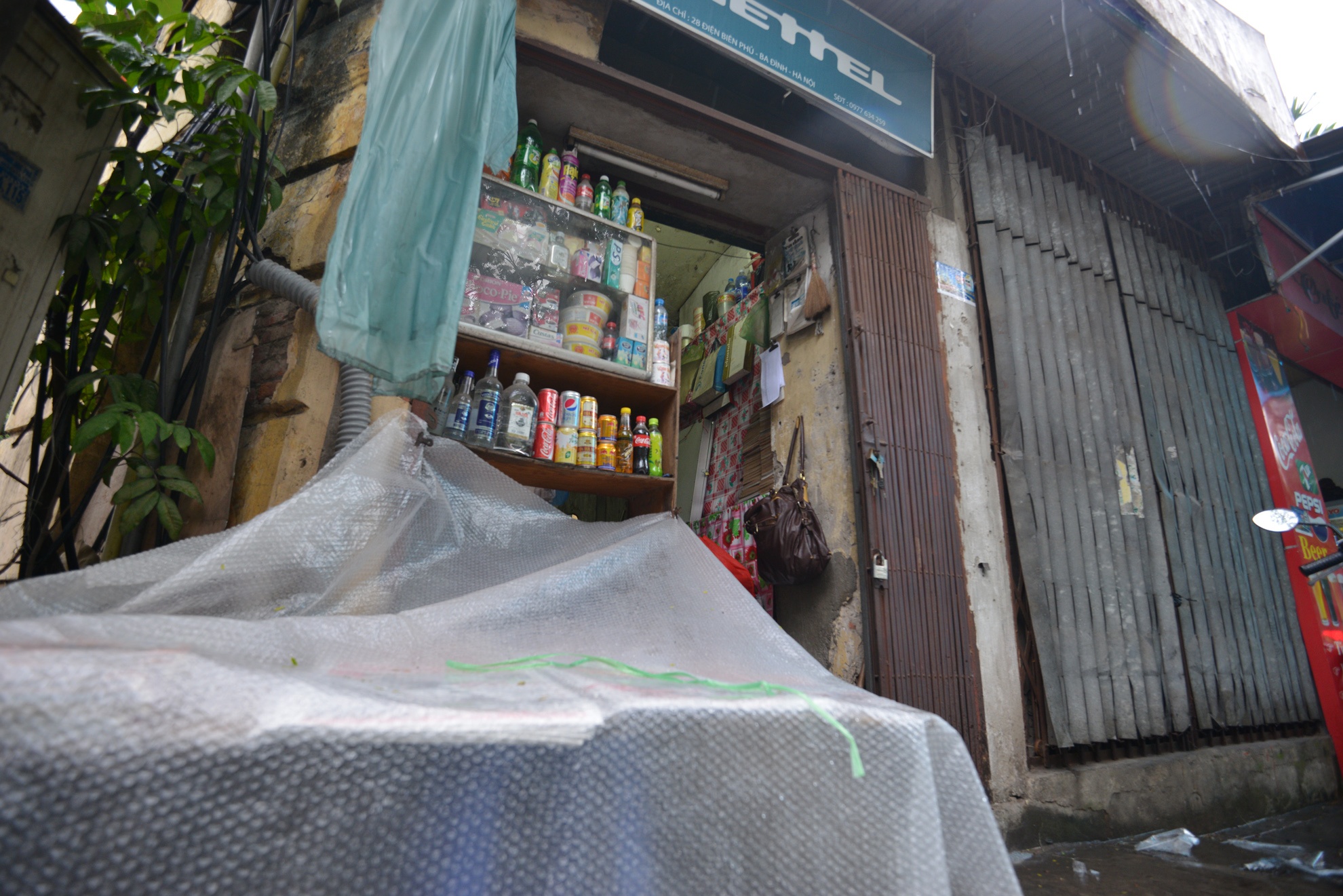 Một tiệm tạp hóa ở ngã tư Điện Biên Phủ, Nguyễn Tri Phương (quận Ba Đình) có diện tích chỉ 4 m2 nhưng bán đủ mặt hàng. Nhìn từ bên ngoài, cửa hàng mini này trông khá nhếch nhác.