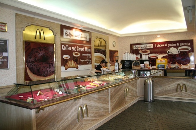 Cửa hàng McDonald’s tại Broadway (Gran Via), Madrid, Tây Ban NhaTại cửa hàng McDonald’s này, bạn có thể thưởng thức thịt bò hảo hạng và khoai tây tươi. McCafe tại đây bán chocolate cappuccino, nhiều loại bánh nướng và bánh camaroon cao cấp. Ngoài ra, họ cũng phục vụ bia. Cửa hàng này có thực đơn khác hẳn với những cửa hàng tại Mỹ. Thiết kế bên trong được mô tả là rất đẳng cấp với tường bằng đá cẩm thạch và đèn trần. |